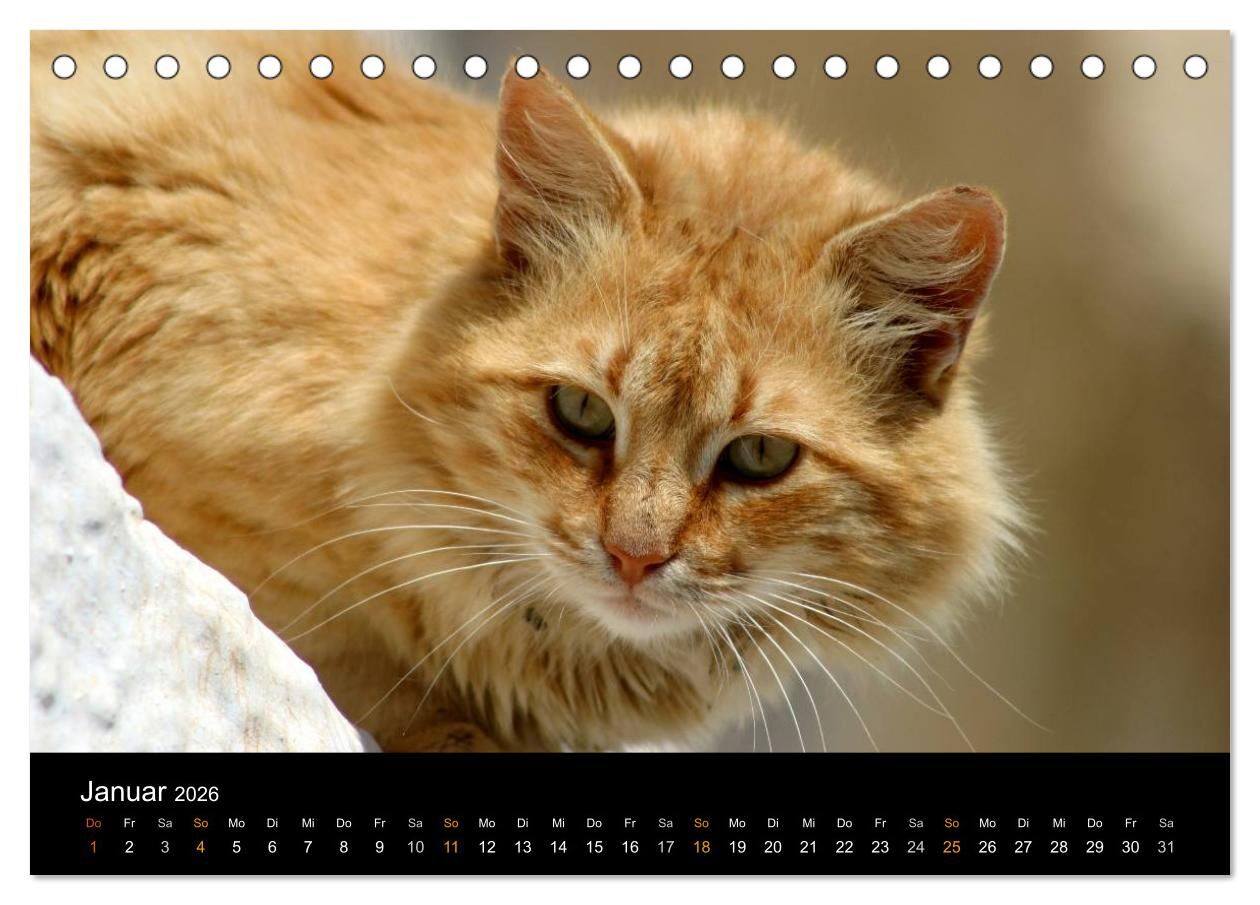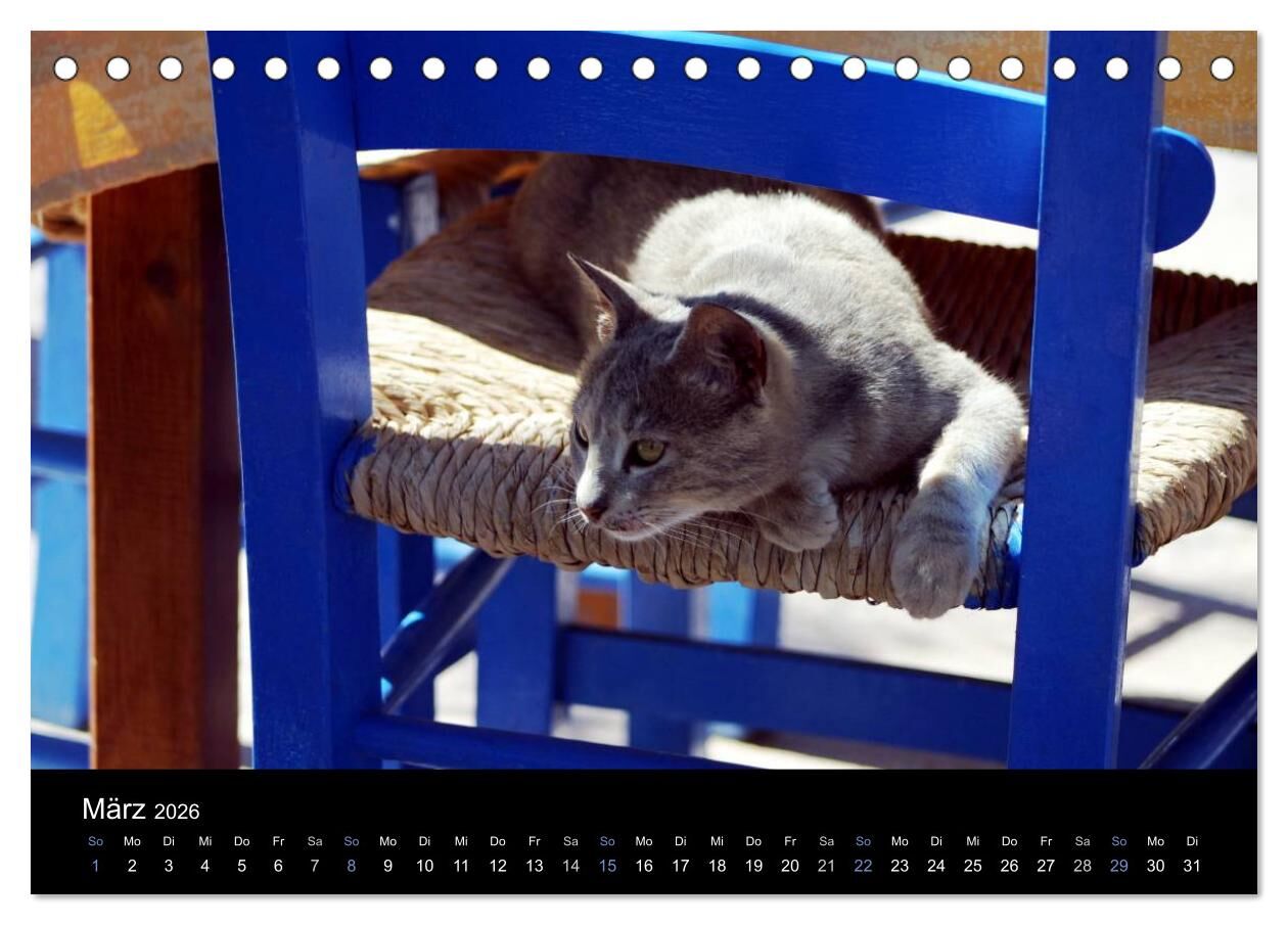 Eindrucksvoller Katzen-Kalender mit Fotografien der geschmeidigen Vierbeiner in Ihrem natürlichen Umfeld der griechischen Inseln Santorin und Kreta. Katzenfreunden wird das Herz höher schlagen, wenn sie ihre Lieblinge vor den landestypischen malerischen Kuliss...