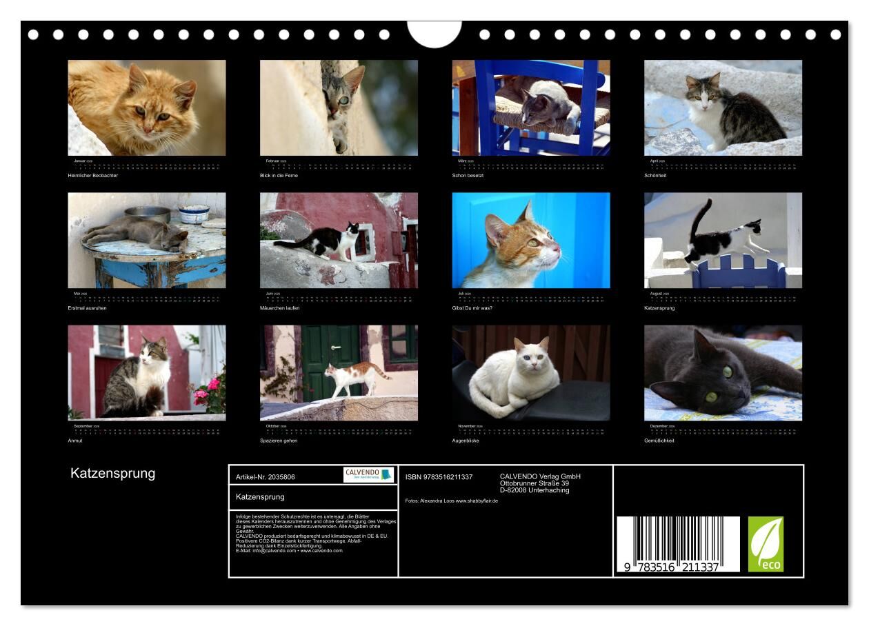 Eindrucksvoller Katzen-Kalender mit Fotografien der geschmeidigen Vierbeiner in Ihrem natürlichen Umfeld der griechischen Inseln Santorin und Kreta. Katzenfreunden wird das Herz höher schlagen, wenn sie ihre Lieblinge vor den landestypischen malerischen Kuliss...