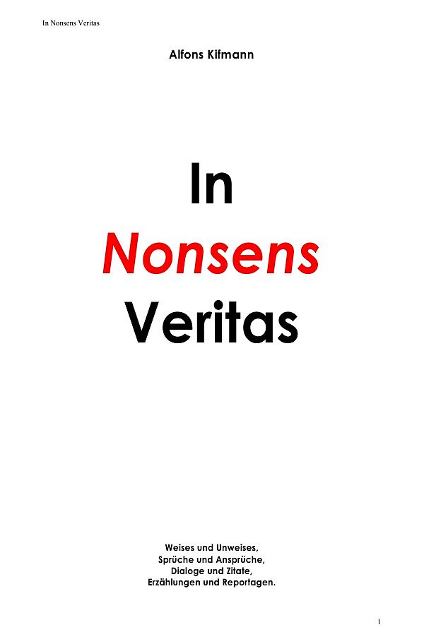 In Nonsens Veritas ist eine unterhaltsame, nachdenklich stimmende Aphorismen-Sammlung. In Nonsens Veritas ist eine ebenso unterhaltsame wie nachdenklich stimmende Aphorismen-Sammlung aus Sprüchen und Ansprüchen, Dialogen und Zitaten, Erzählungen und Reportagen...