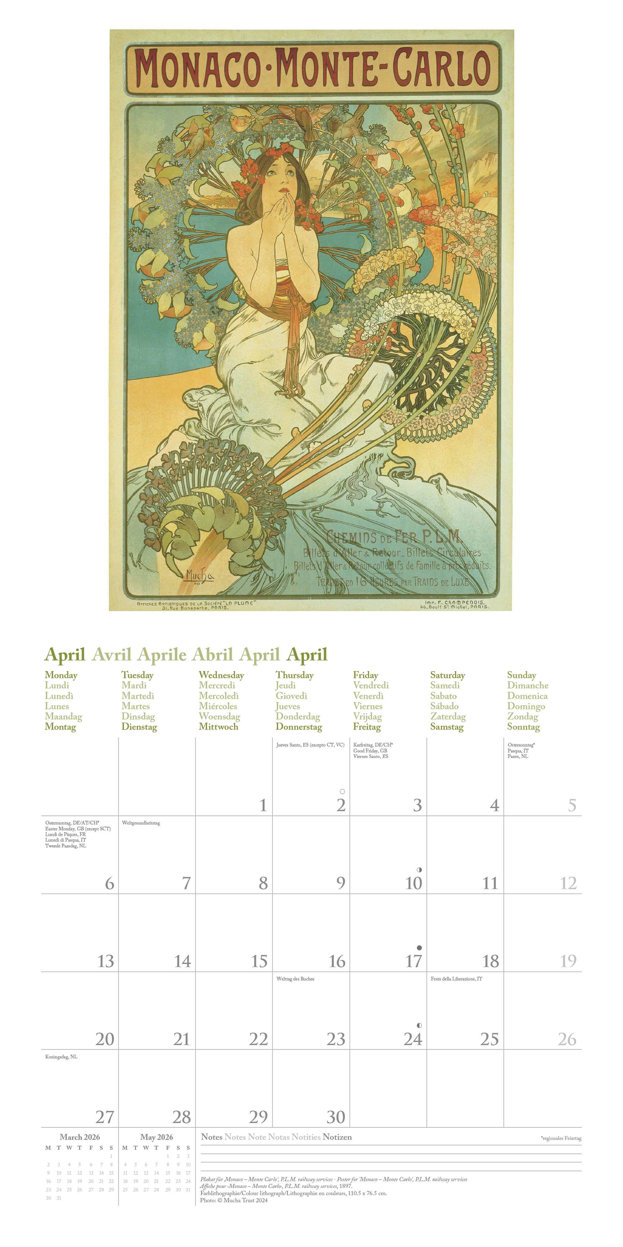 Der teNeues Alfons Mucha 2026 Wandkalender zeigt zwölf ausgewählte Meisterwerke des weltberühmten tschechischen Künstlers (18601939). Mucha wurde zum Inbegriff des Jugendstils: Seine eleganten Plakate mit zarten Farben, ornamentalen Elementen und idealisierte...