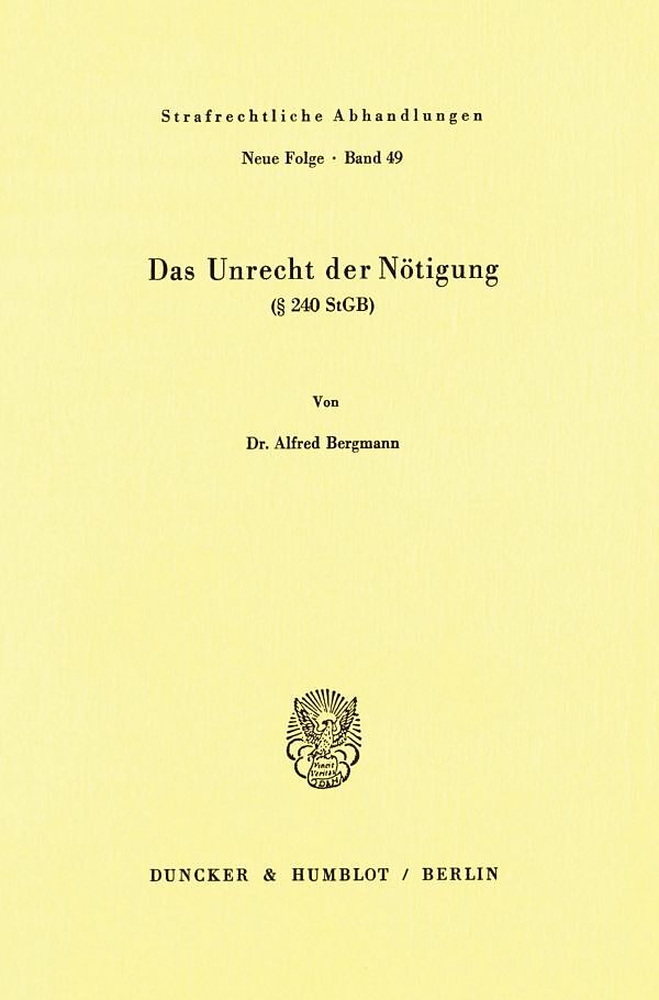 Die »Strafrechtlichen Abhandlungen - Neue Folge« wurden 1957 von Eberhard Schmidhäuser in Zusammenarbeit mit den deutschen Strafrechtslehrern in der Nachfolge der von Hans Bennecke begründeten »Strafrechtlichen Abhandlungen« (1896 bis 1942) eröffnet. Ihr Ziel ...