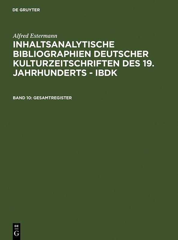 Alfred Estermann: Inhaltsanalytische Bibliographien deutscher Kulturzeitschriften... / Gesamtregister