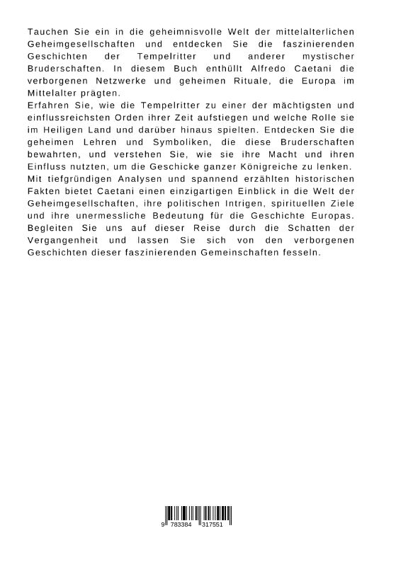 Tauchen Sie ein in die geheimnisvolle Welt der mittelalterlichen Geheimgesellschaften und entdecken Sie die faszinierenden Geschichten der Tempelritter und anderer mystischer Bruderschaften. In diesem Buch enthüllt Alfredo Caetani die verborgenen Netzwerke und...