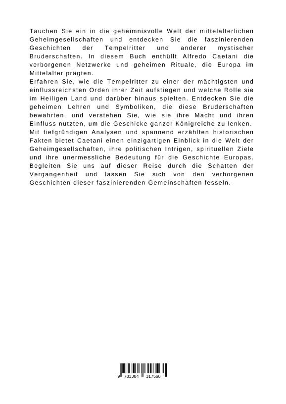 Tauchen Sie ein in die geheimnisvolle Welt der mittelalterlichen Geheimgesellschaften und entdecken Sie die faszinierenden Geschichten der Tempelritter und anderer mystischer Bruderschaften. In diesem Buch enthüllt Alfredo Caetani die verborgenen Netzwerke und...