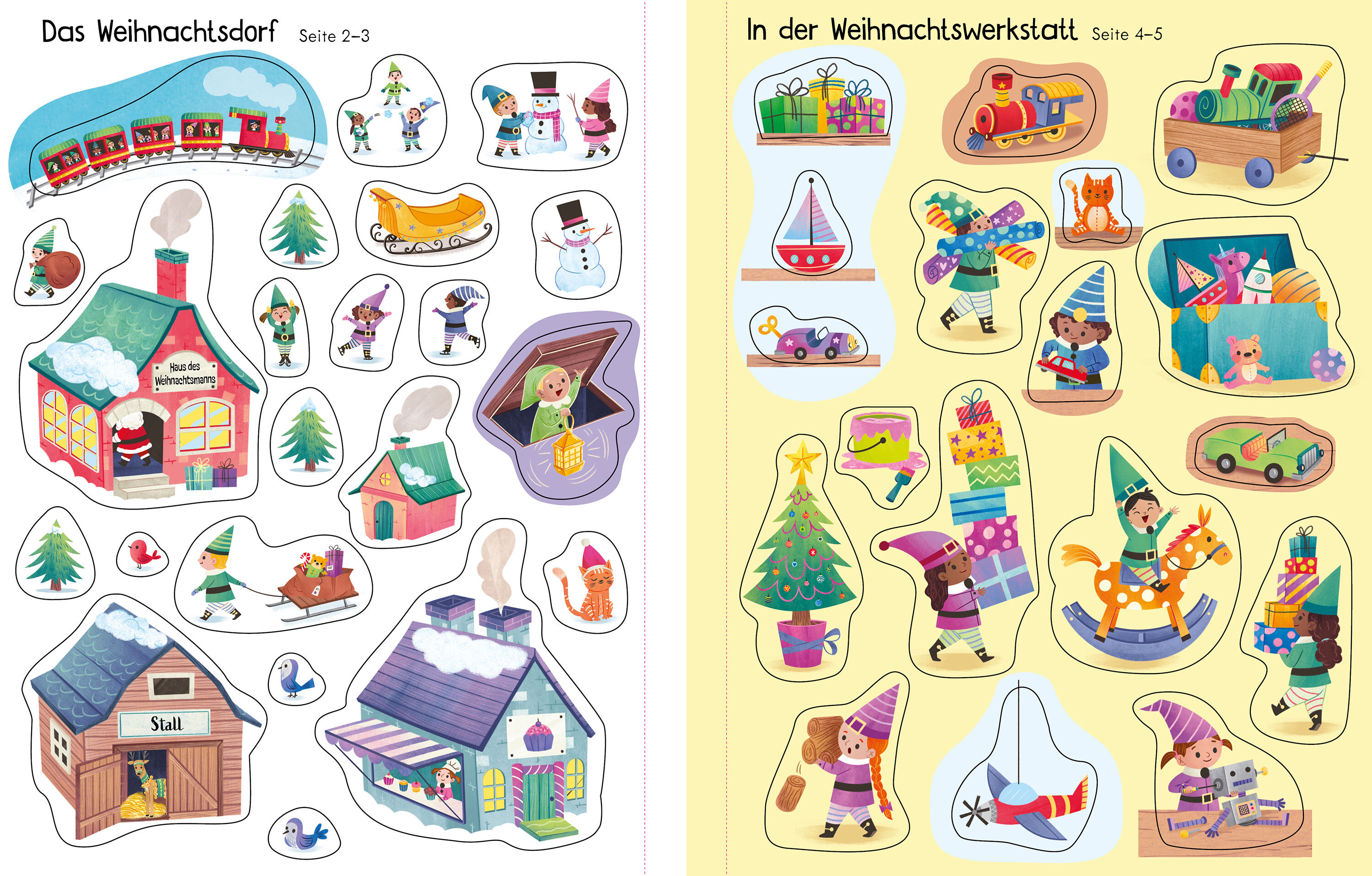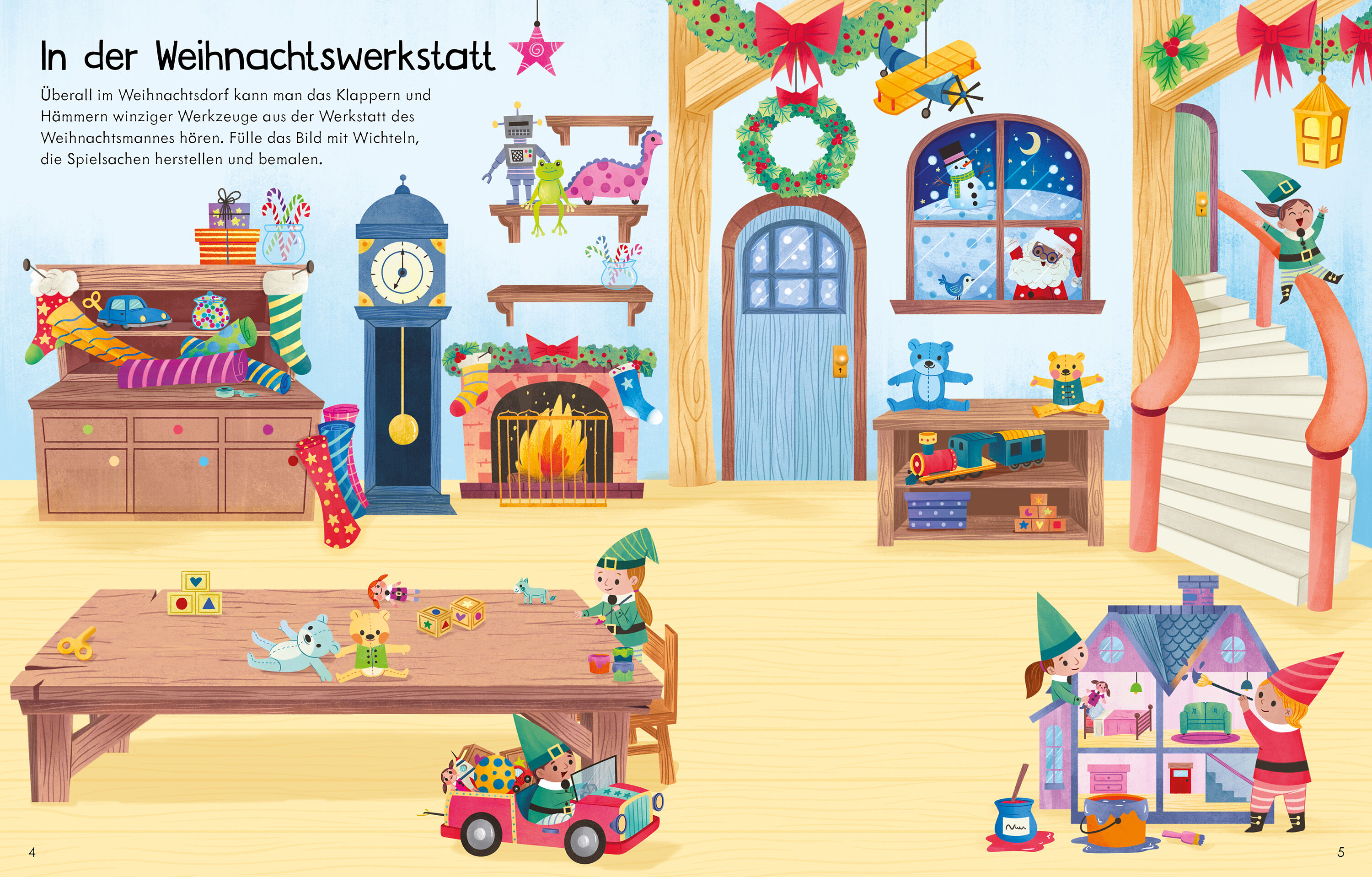 Der Weihnachtsmann bei der Arbeit Richte die Werkstatt des Weihnachtsmannes ein, belade den Schlitten mit Geschenken und spanne die Rentiere davor, damit die große Reise losgehen kann. Mit über 100 Stickern kannst du dem Weihnachtsmann und seinen Wichteln bei...