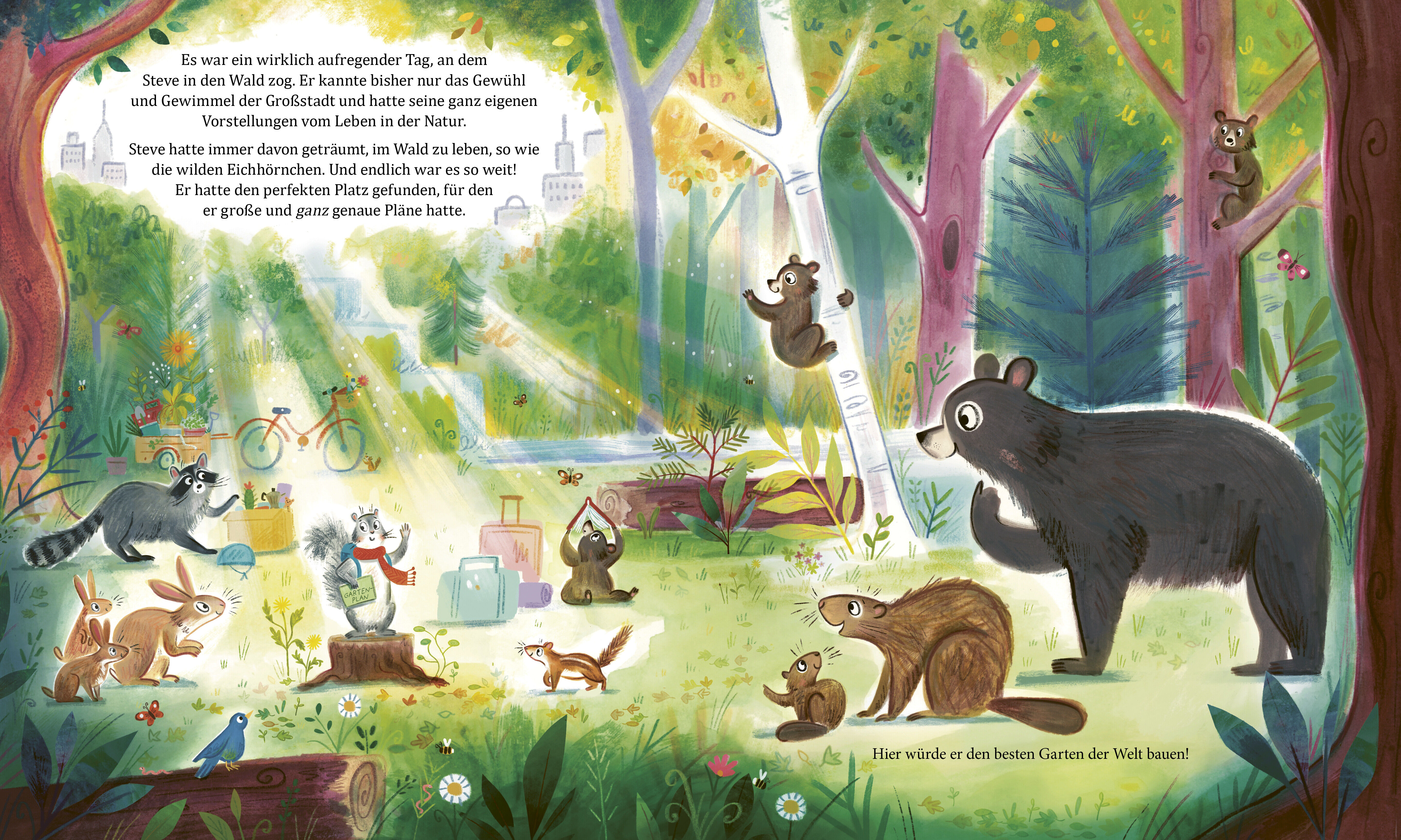 Ein Garten für alle! Stadthörnchen Steve hat einen großen Traum: Er will ins Grüne ziehen und dort den besten Garten der Welt erschaffen. Die Waldtiere helfen begeistert mit und pflanzen und jäten und säen und stutzen, bis alles perfekt ist. Doch was ist das?...