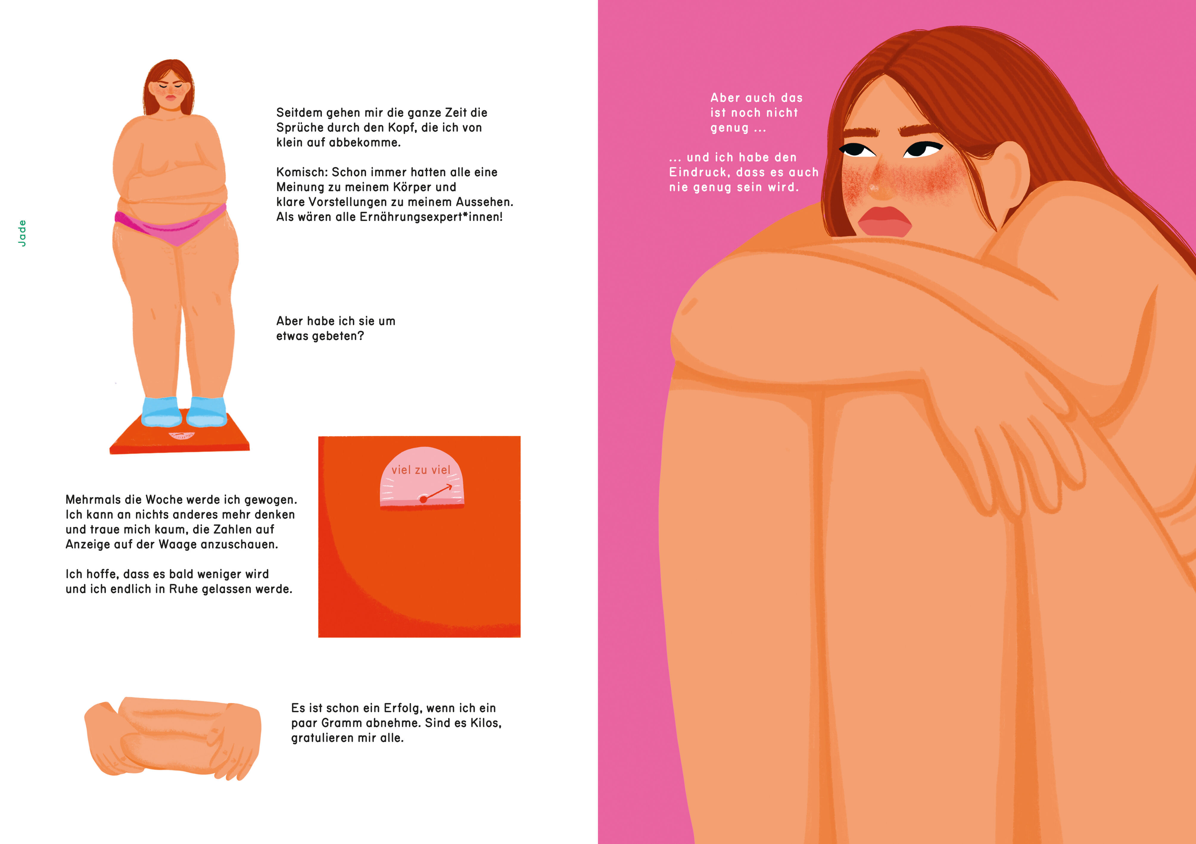 Jade hat eine kurvige Figur, aber das war nie ein Problem für sie bis zu dem Tag, an dem ihre Mutter sie auf Diät setzt. Um sich von der Besessenheit, den perfekten Körper zu erreichen, befreien zu können, beschließt sie, selbst kreativ zu werden.