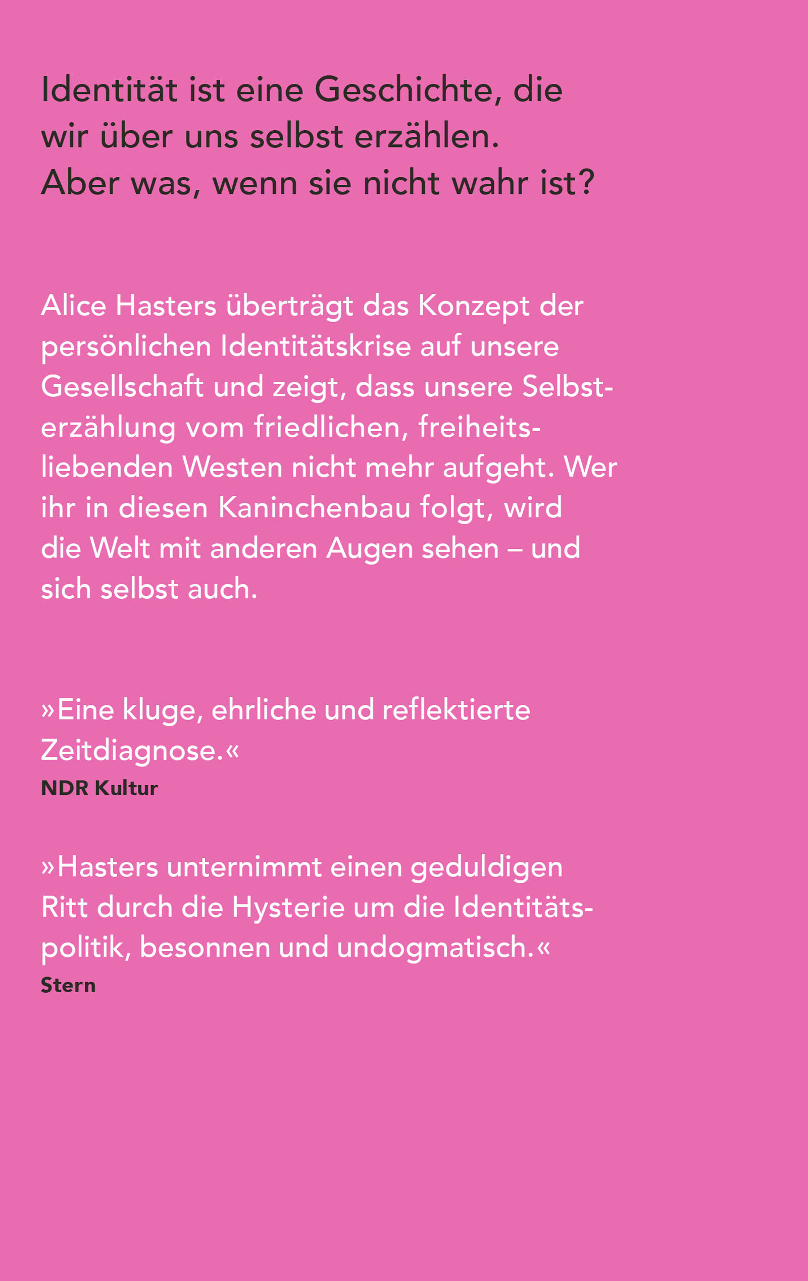 Wer Bestsellerautorin Alice Hasters in ihrem neuen Buch in den Kaninchenbau der Identitätskrise folgt, wird die Welt mit anderen Augen sehen und sich selbst auch Wir sind klimabewusst. Wir haben eine Erinnerungskultur. Freiheit und Frieden sind westliche Tugen...