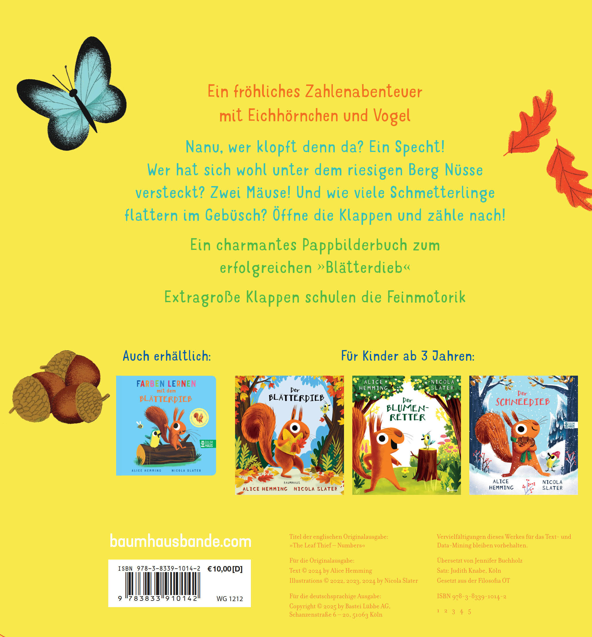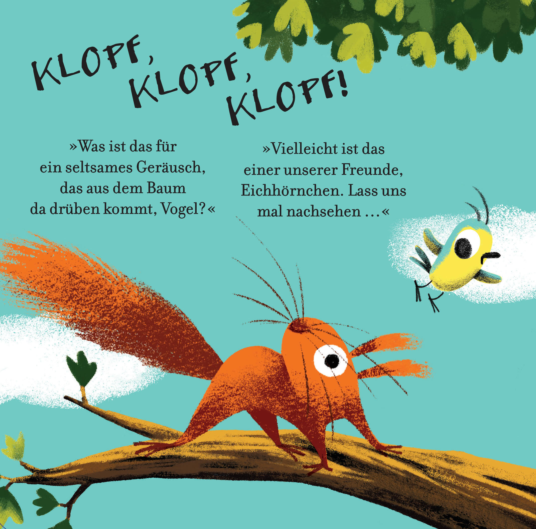 Begleite Eichhörnchen und Vogel auf ihrem lustigen Spaziergang durch den Wald. Nanu, wer klopft denn da? Ein Specht! Wer versteckt sich unter dem riesigen Berg Nüsse? Zwei Mäuse! Und wie viele Schmetterlinge flattern wohl im Gebüsch? Entdecke gemeinsam mit de...
