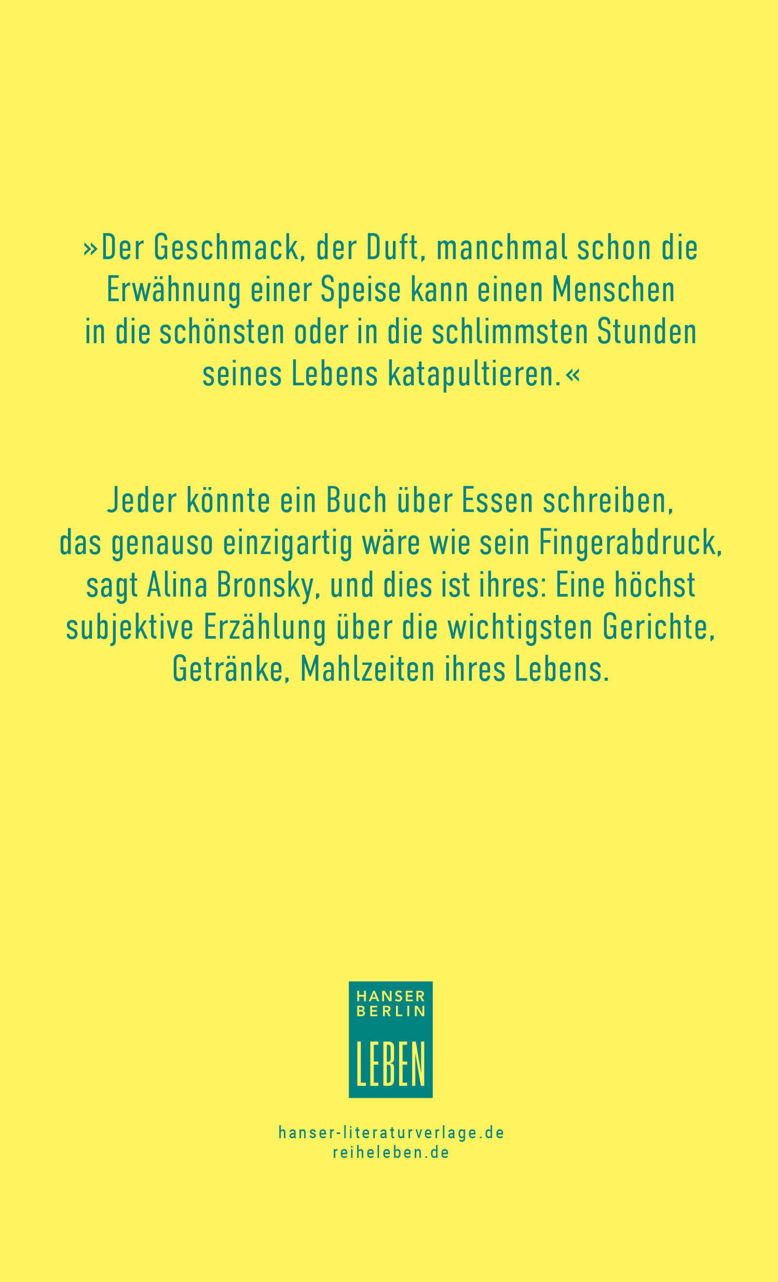 Wenn Bestsellerautorin Alina Bronsky über Essen schreibt, geht es ans Eingemachte: Um Liebe, Hass, Verführung und Erpressung. Nur wenige Dinge sind so privat und so öffentlich, so zelebriert oder verheimlicht, so omnipräsent und zugleich verdrängt wie die Spei...