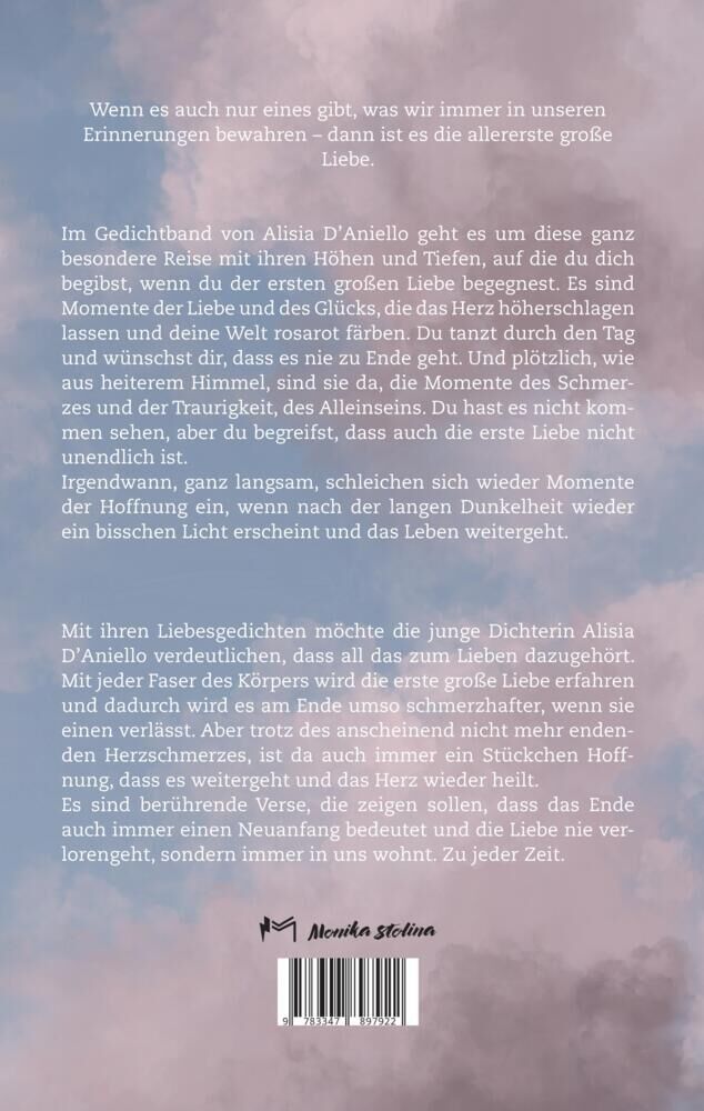 Wenn es auch nur eines gibt, was wir immer in unseren Erinnerungen bewahren dann ist es die allererste große Liebe. Im Gedichtband von Alisia D'Aniello geht es um diese ganz besondere Reise mit ihren Höhen und Tiefen, auf die du dich begibst, wenn du der erste...