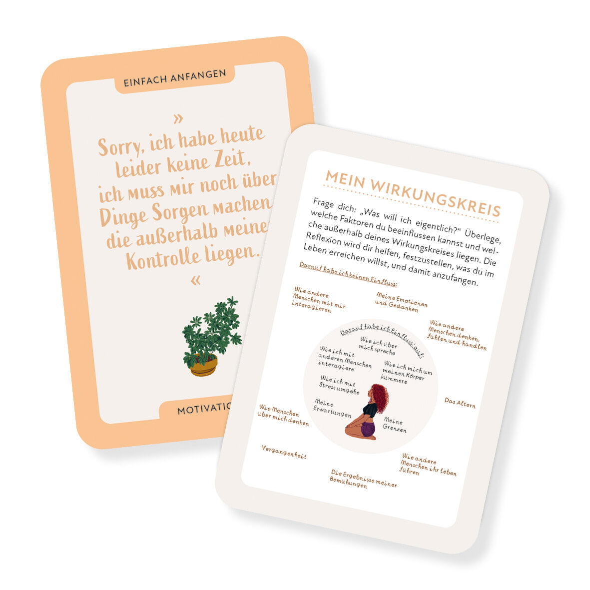 Dieses Kartenset ist der ultimative Begleiter, um Struktur und Klarheit in verschiedenen Lebensbereichen zu schaffen seien es der Umgang mit Emotionen, Kommunikationsprobleme, Prokrastination oder das Schaffen von Ordnung. Die Motivationskarten inspirieren mit...