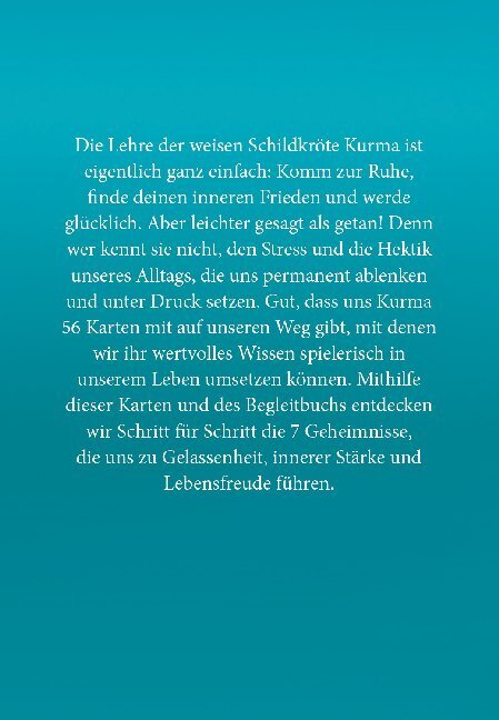 Gelassenheit und Lebensfreude, Weisheit und innere Stärke zeichnen die Schildkröte Kurma aus. Von ihr können wir lernen, dass uns nichts aus der Ruhe zu bringen braucht und mag es noch so hektisch zugehen in unserem Leben. Mit vielen neuen Übungen, Inspiration...