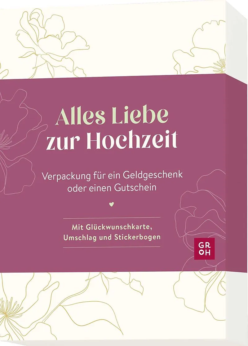 Stilvolle Geldgeschenk-Verpackung zur Hochzeit Edel gestaltete Geschenkbox mit Glückwunschkarte, Sticker-Bogen und farbigem Kuvert Geschenkschachtel und Klappkarte mit Goldfolie veredelt Geldgeschenk-Verpackung Hochzeit mit 3 Einzelteilen (Maße: 17,0 x 12,2 c...