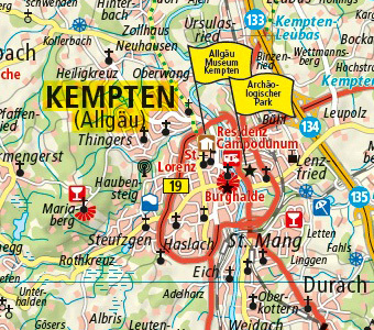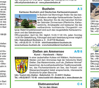 Das Allgäu hat mit seiner reizvollen Voralpenlandschaft und so namhaften Orten wie Kempten, Sonthofen, Oberstdorf oder Kaufbeuren viel für Touristen zu bieten. Die eingezeich- neten Rad- und Wanderwege im Kartenteil führen durch die bergige Landschaft. Nicht n...