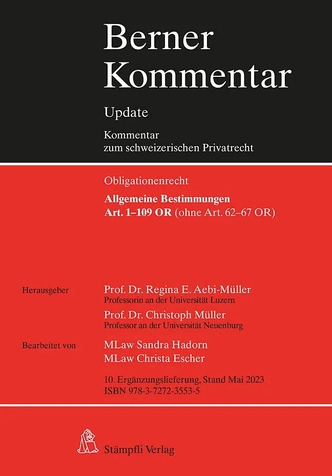 Die vorliegende Ergänzungslieferung aktualisiert das bestehende Berner Kommentar Update zu den Artikeln 1109 OR (ohne Art. 6267 OR). Die wichtigsten ergangenen Urteile des Bundesgerichts sowie verschiedener kantonaler Gerichte folgen der Terminologie und der S...