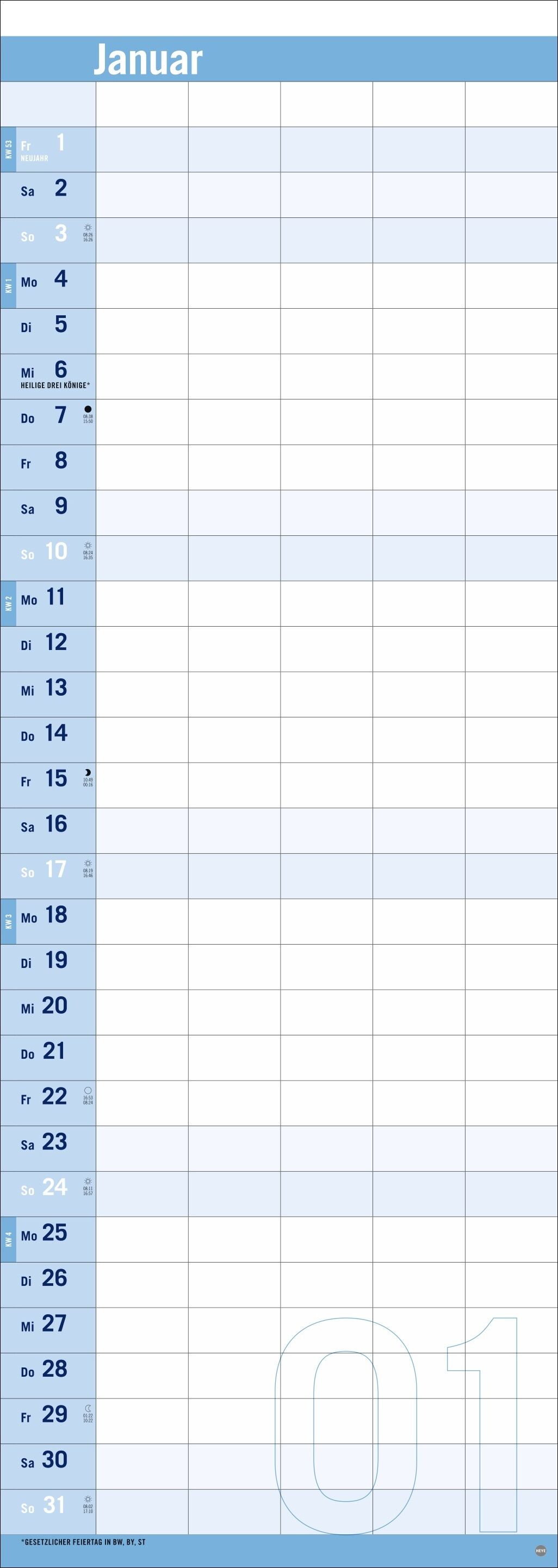 Gute Planung ist alles: Der übersichtliche Familienplaner für die Wand sorgt dafür, dass sie alles im Blick haben - 5 Spalten, drei Stundenpläne und viel Platz für Eintragungen: Der Allround-Familienkalender hat alles, was Sie brauchen, um den Überblick zu b...