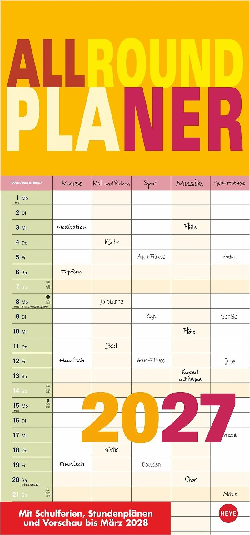 - Alle Termine im Blick: Das schlichte Design dieses Wandplaners sorgt für Übersichtlichkeit - Monatskalender 2027 mit 5 Spalten: Perfekt, um in Familie, Büro oder WG den Überblick zu behalten - Unser erfolgreiches Konzept für Familienplaner: 5 Spalten mit aus...