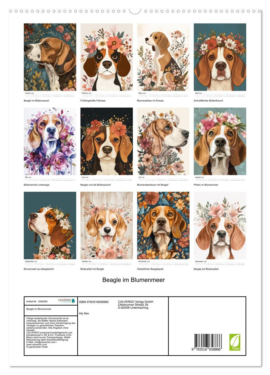 Entdecken Sie den zauberhaften KI Beagle Kalender, der Sie Monat für Monat mit liebevoll illustrierten Beagel-Hunden und farbenfrohen Blumenmotiven verzaubert. Jeder Monat bringt eine neue Szene, in der süße Beagel mit einer Vielfalt von Blüten in harmonischem...