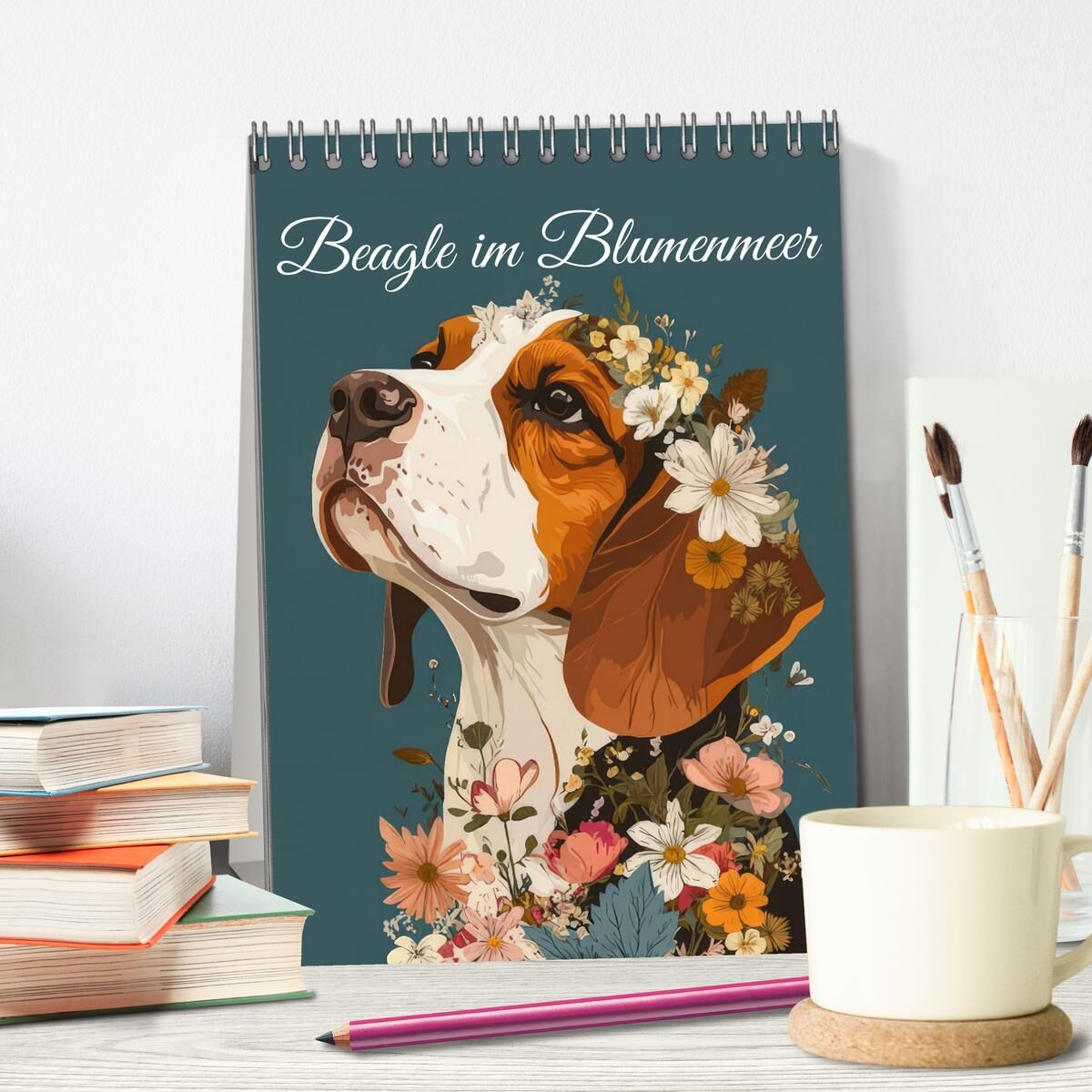 Entdecken Sie den zauberhaften KI Beagle Kalender, der Sie Monat für Monat mit liebevoll illustrierten Beagel-Hunden und farbenfrohen Blumenmotiven verzaubert. Jeder Monat bringt eine neue Szene, in der süße Beagel mit einer Vielfalt von Blüten in harmonischem...
