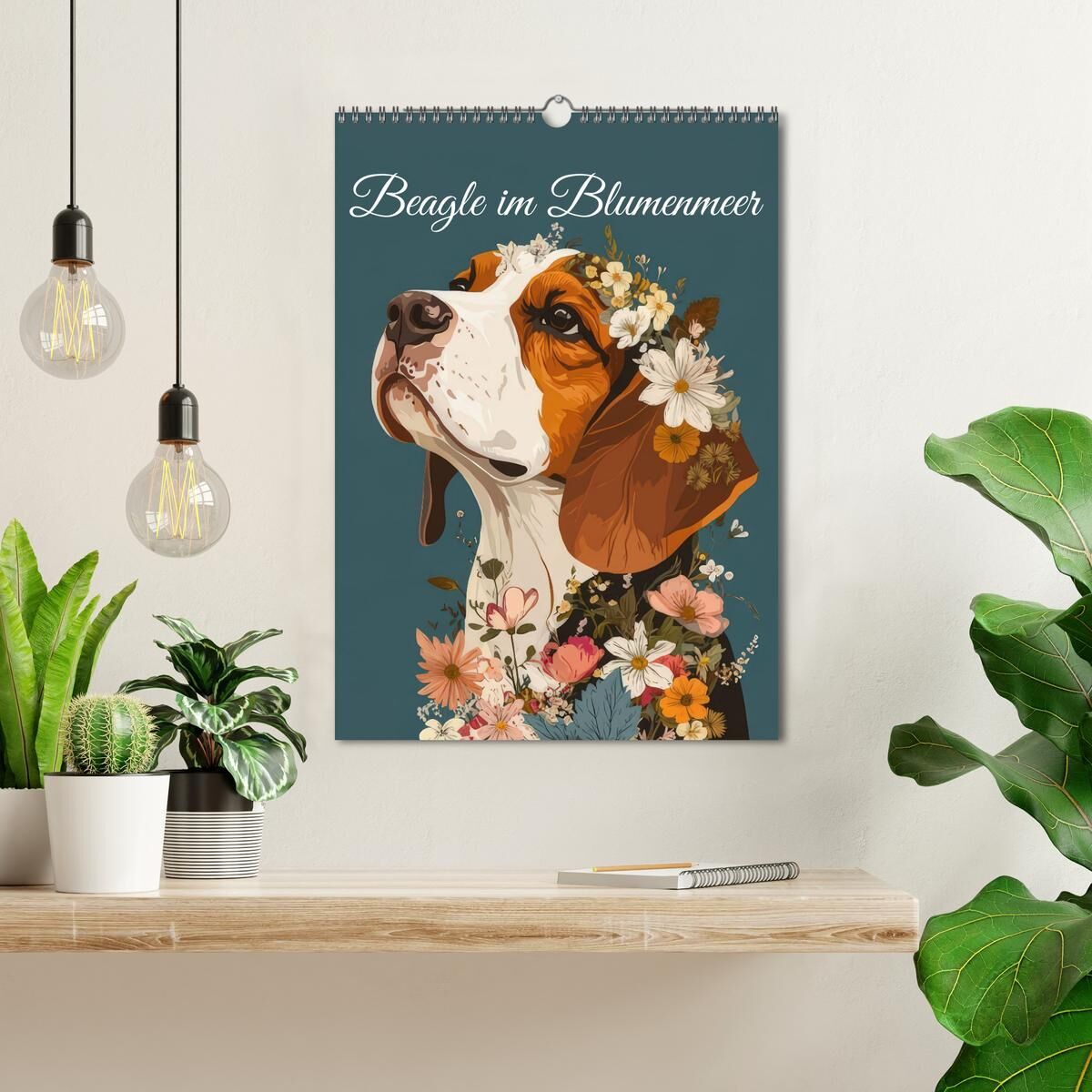 Beagle im Blumenmeer (Wandkalender 2026 DIN A3 hoch), CALVENDO Monatskalender