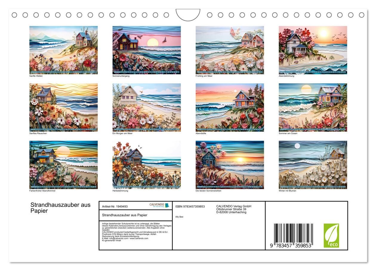 Strandhauszauber aus Papier (Wandkalender 2026 DIN A4 quer), CALVENDO Monatskalender