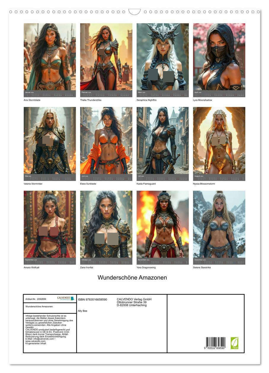 Entdecken Sie den faszinierenden KI Kalender, der Sie Monat für Monat in die Welt starker und wunderschöner Kriegerinnen entführt. Jede Seite präsentiert eine einzigartige Heldin, von Aria Stormblade bis Yara Dragonswing, die Stärke, Anmut und Entschlossenheit...