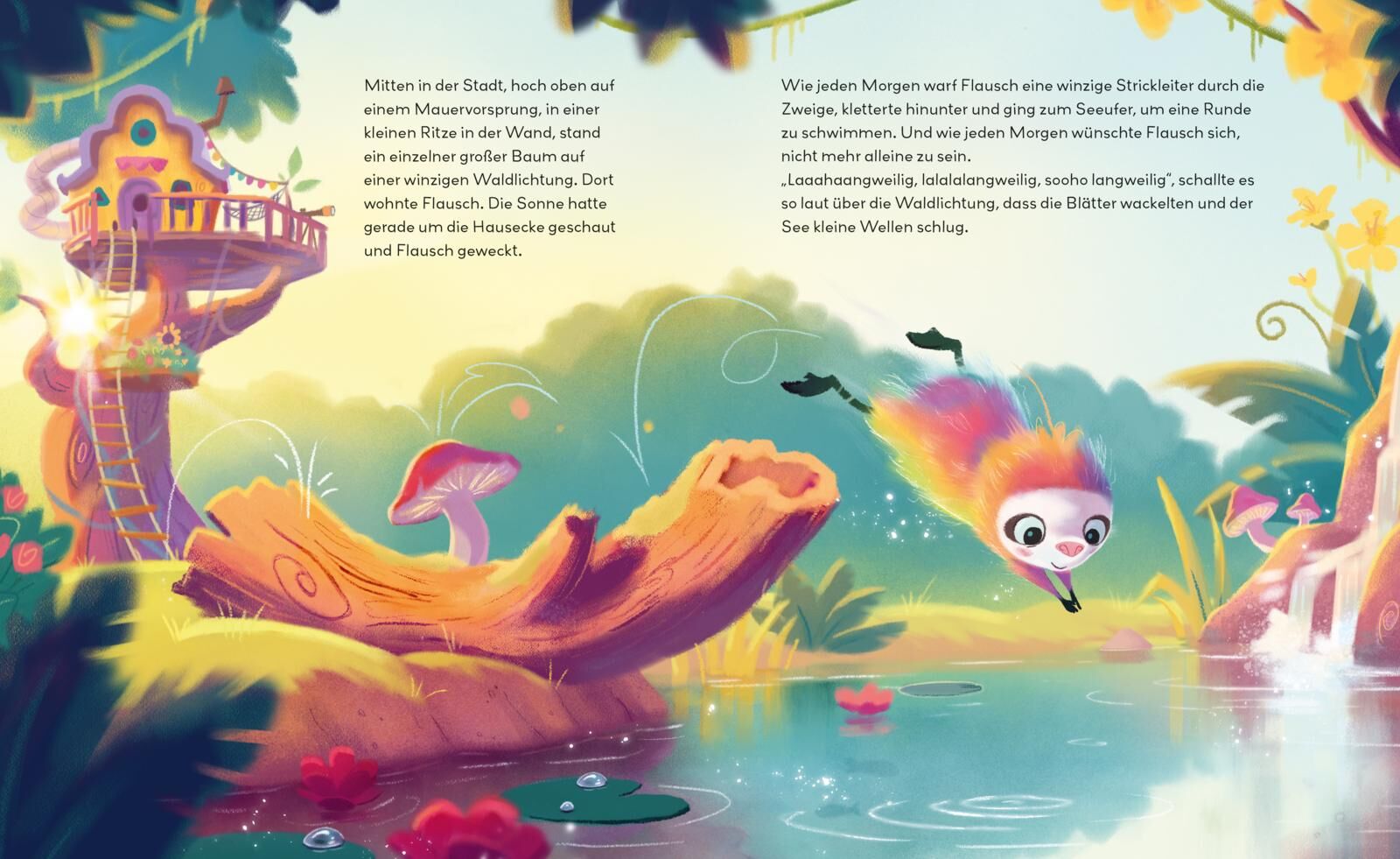 Ein Bilderbuch für mehr Toleranz und Selbstbewusstsein Mitten in der Stadt, hoch oben auf einem Mauervorsprung steht ein Baum. Genau dort wohnt Flausch in einem Baumhaus. Flausch ist gerade erst eingezogen und hat noch kein Tier zum Spielen gefunden. Die ande...