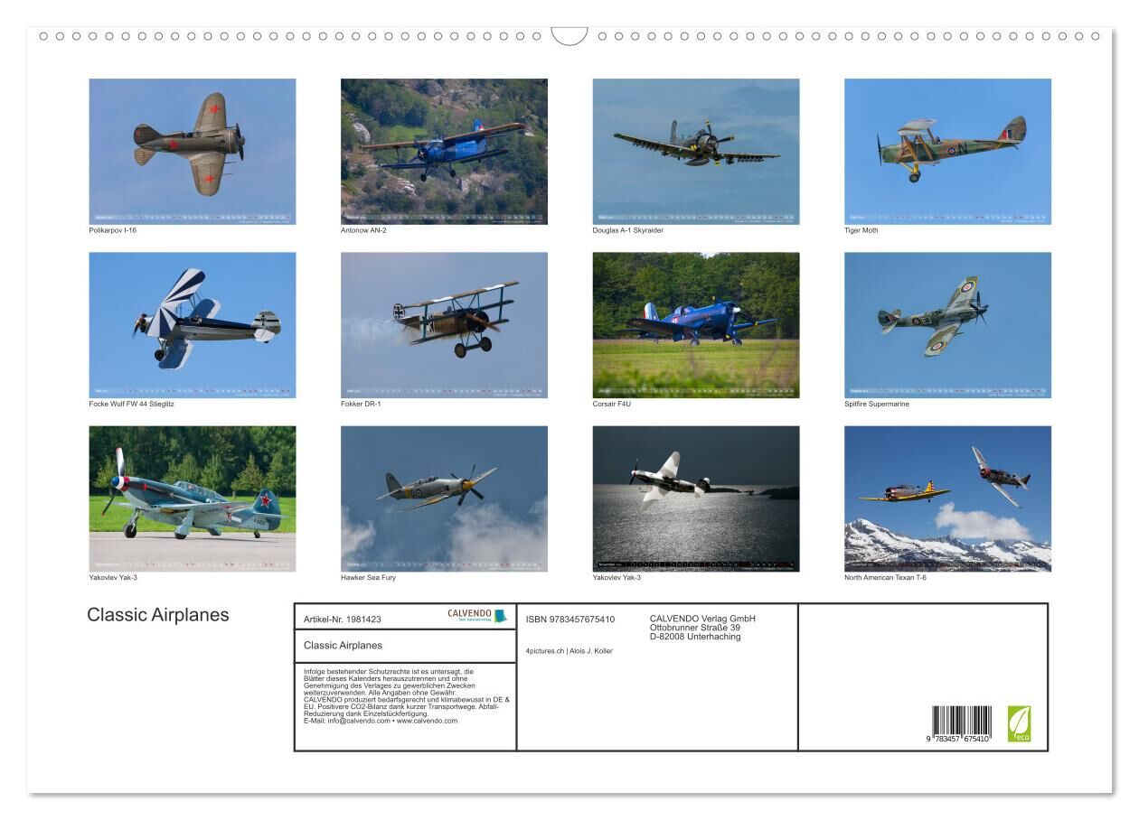 Classic Airplanes (Wandkalender 2026 DIN A2 quer), CALVENDO Monatskalender