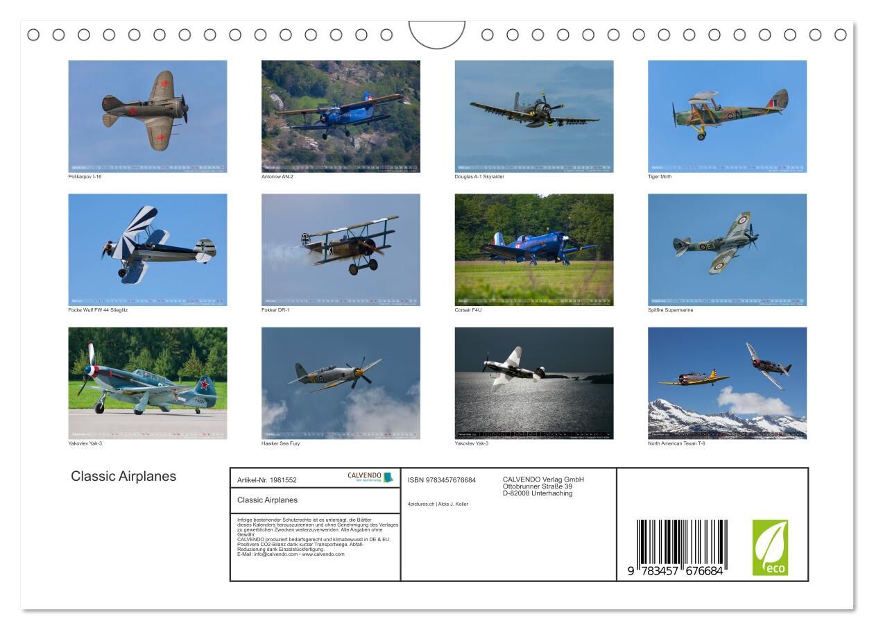 Classic Airplanes (Wandkalender 2026 DIN A4 quer), CALVENDO Monatskalender