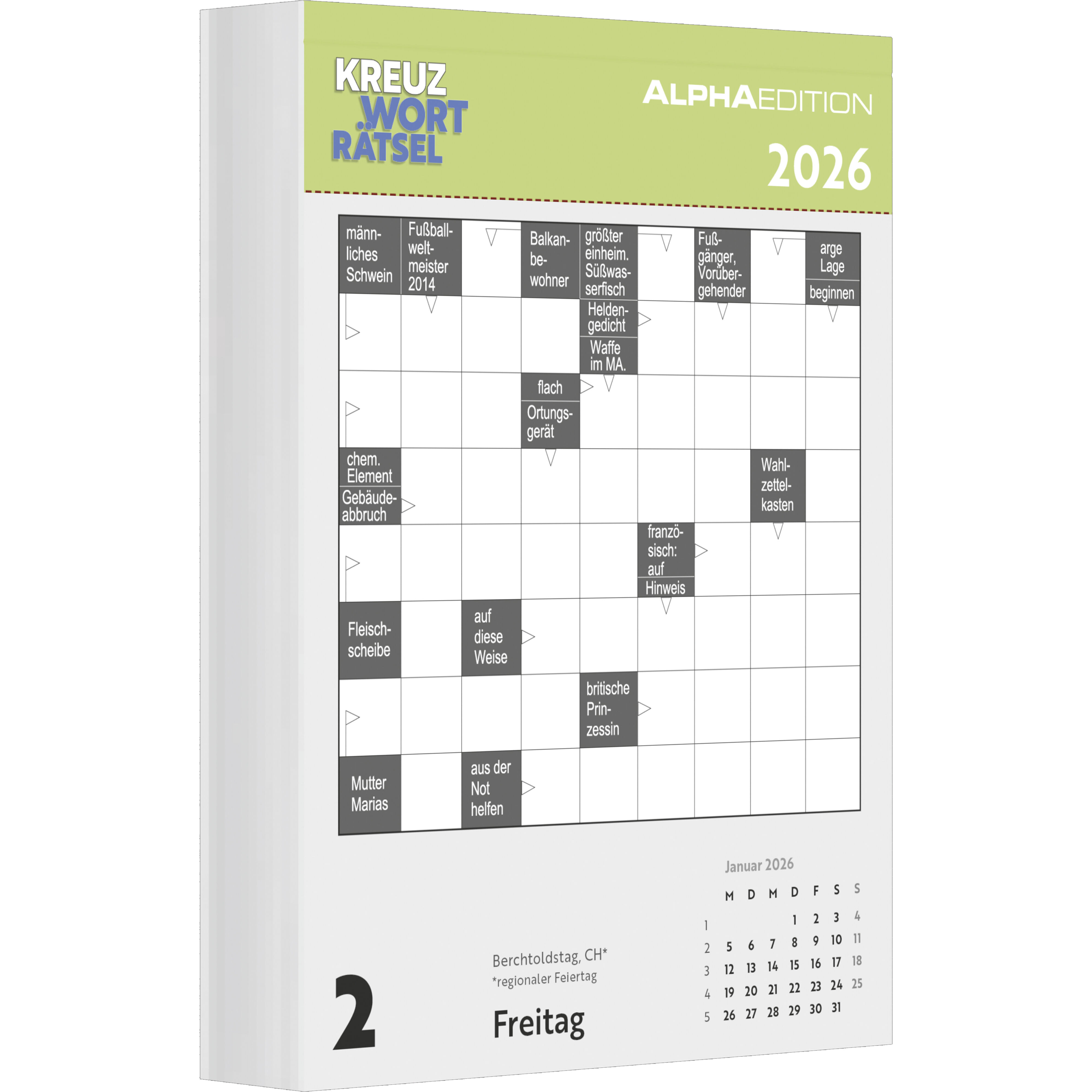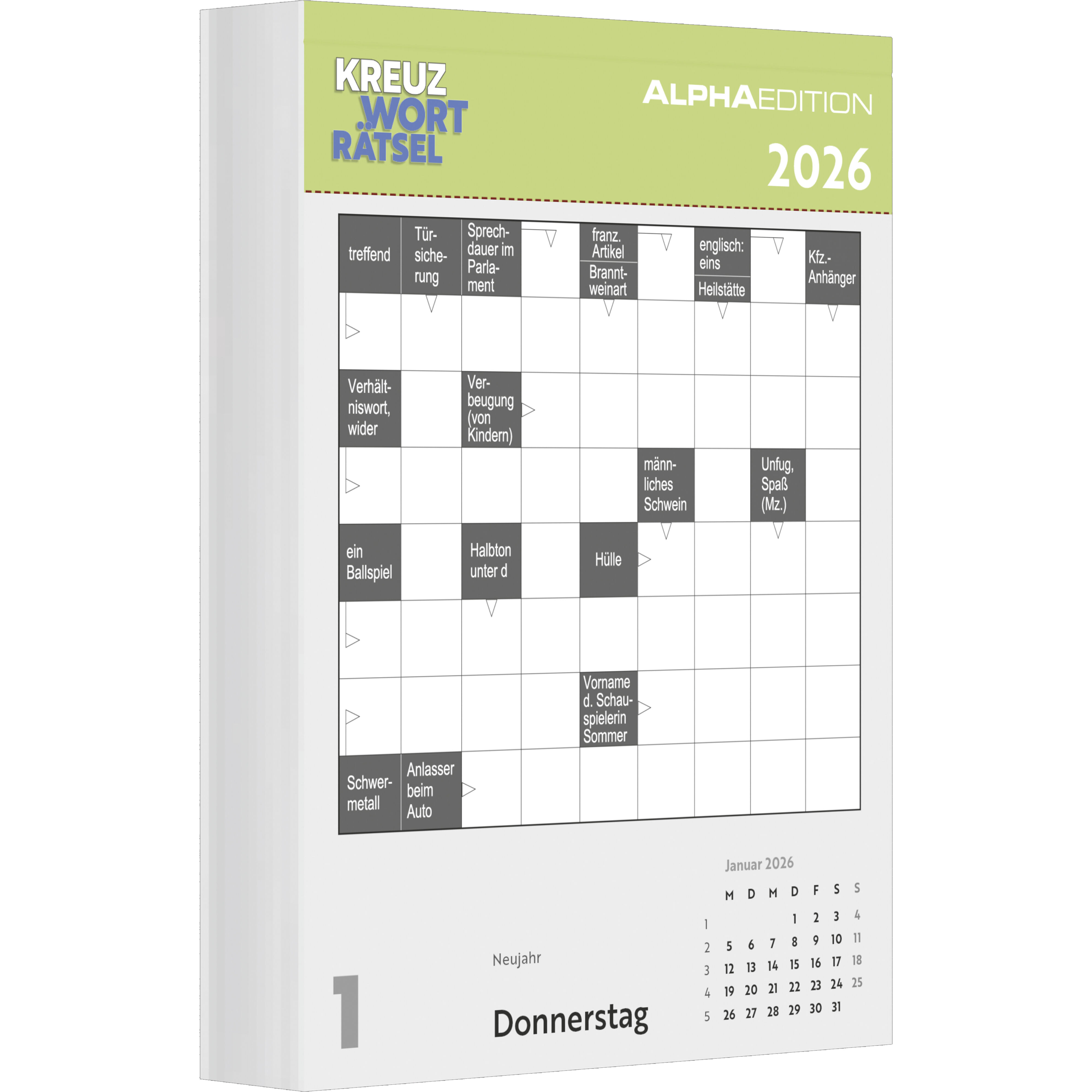Der Alpha Edition Das tägliche Kreuzworträtsel Kalender 2026 sorgt für täglichen Rätselspaß. Mit 313 Schwedenrätseln trainieren Sie spielerisch Ihr Gedächtnis, erweitern Ihre Allgemeinbildung und gönnen sich entspannende Knobelmomente im Alltag. Highlights: A...