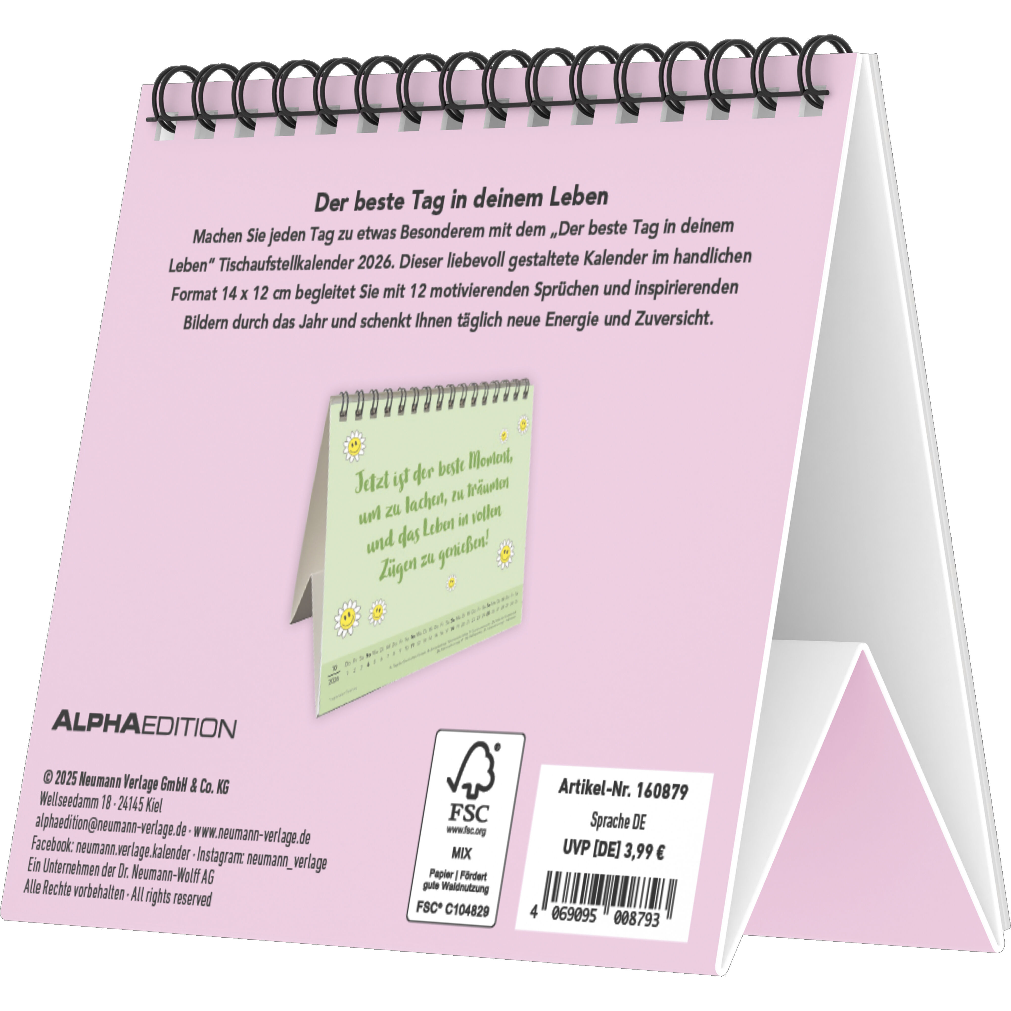 Der beste Tag in deinem Leben Tischaufstellkalender 2026 im Format 14 x 12 cm Machen Sie jeden Tag zu etwas Besonderem mit dem Der beste Tag in deinem Leben Tischaufstellkalender 2026 . Dieser liebevoll gestaltete Kalender im handlichen Format 14 x 12 cm begl...