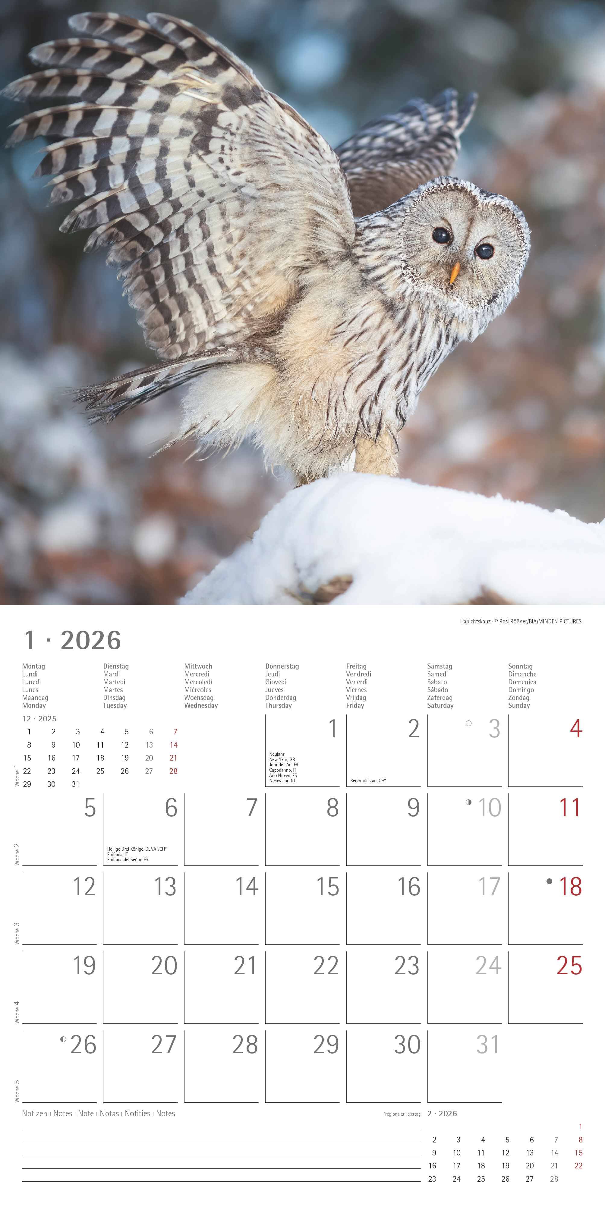 Der Alpha Edition Eulen 2026 ist der perfekte Broschürenkalender für alle, die diese geheimnisvollen und majestätischen Vögel lieben. Mit 12 ausdrucksstarken Fotografien präsentiert dieser hochwertige Wandkalender Monat für Monat die Schönheit und Vielfalt de...