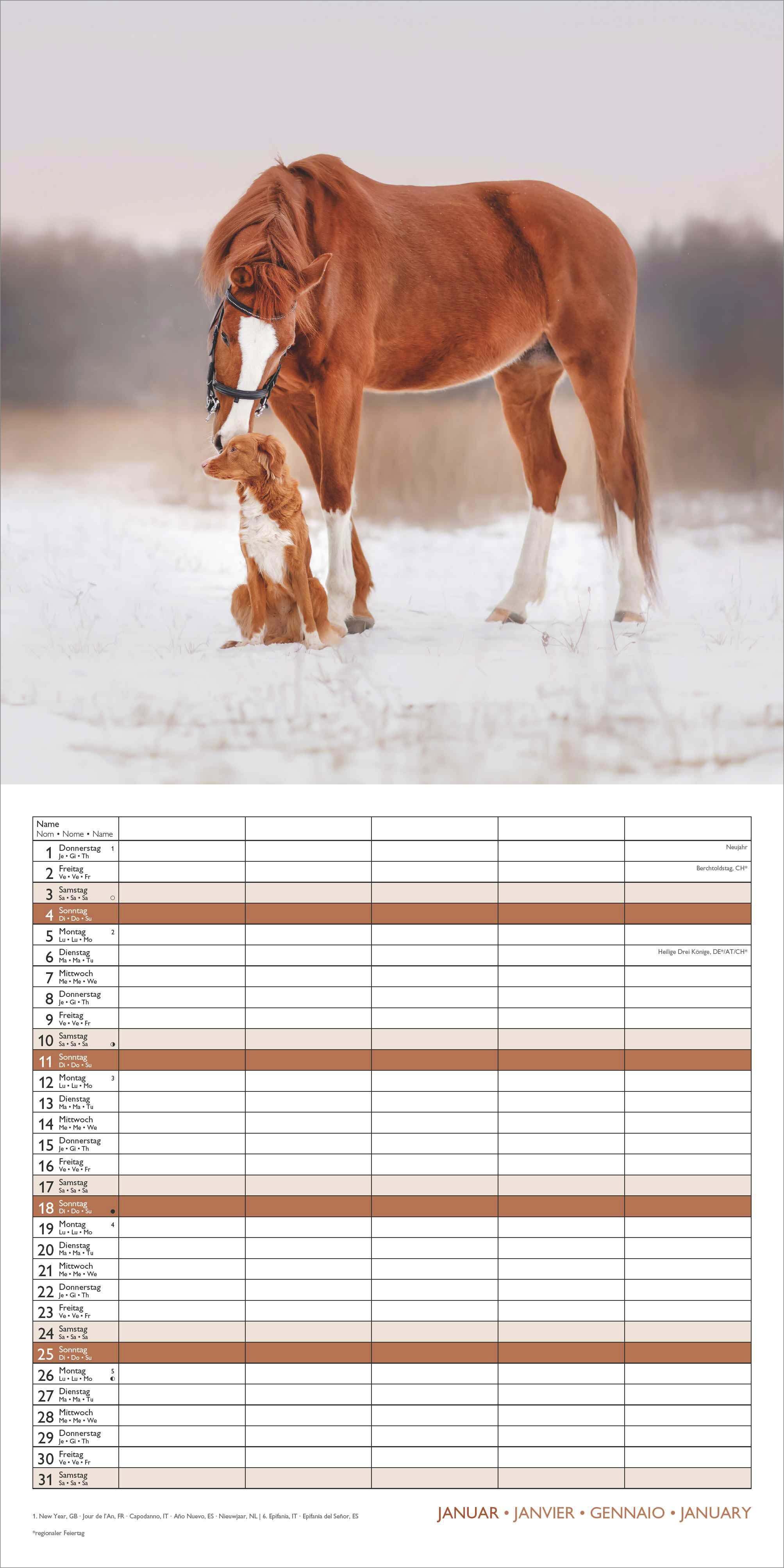 Der Familienplaner Beste Freunde 2026 von Alpha Edition bringt tierische Wärme und praktische Organisation in Ihr Zuhause. Monat für Monat zeigt dieser liebevoll gestaltete Broschürenkalender bezaubernde Tierfreundschaften von kuschelnden Katzen bis zu spiele...