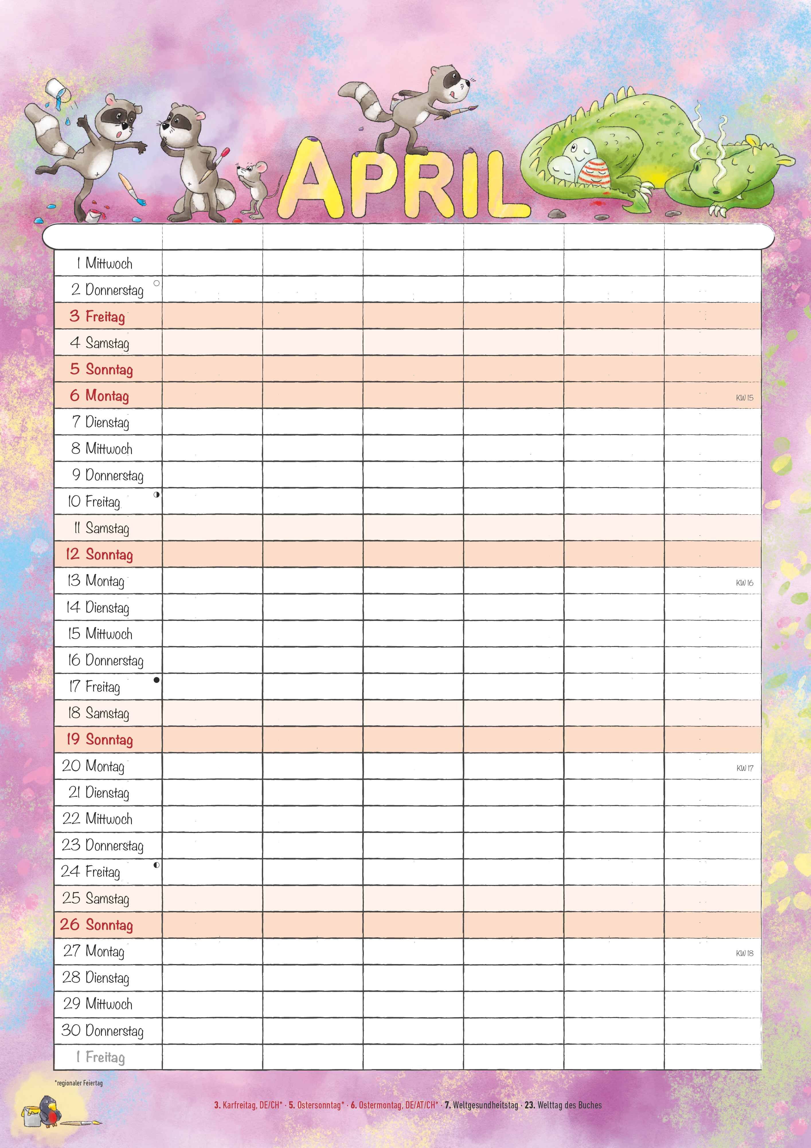 Mit dem Familienplaner Cartoon 2026 behalten Sie alle Termine der Familie übersichtlich im Blick. Der farbenfrohe Wandkalender im Format A3 (29,7 × 42 cm) bietet 6 Spalten für jedes Familienmitglied und sorgt mit den humorvollen Illustrationen von Silke Leski...