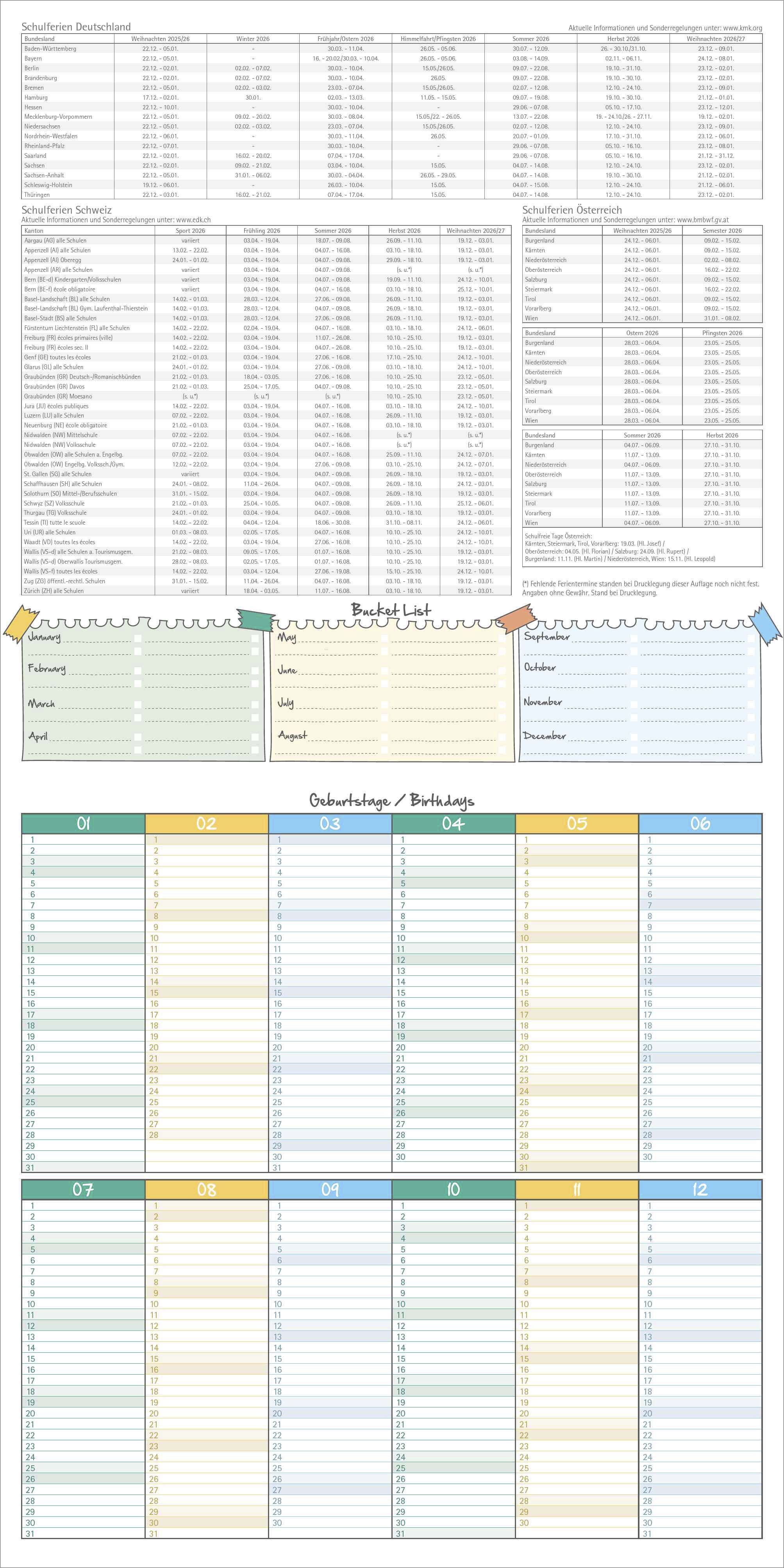 Der Alpha Edition Familienplaner Deluxe Kalender 2026 ist der perfekte Planer für Familien, die Wert auf Übersichtlichkeit, ansprechendes Design und praktische Zusatzfunktionen legen. Mit fünf großzügigen Spalten bietet er ausreichend Platz für die i...