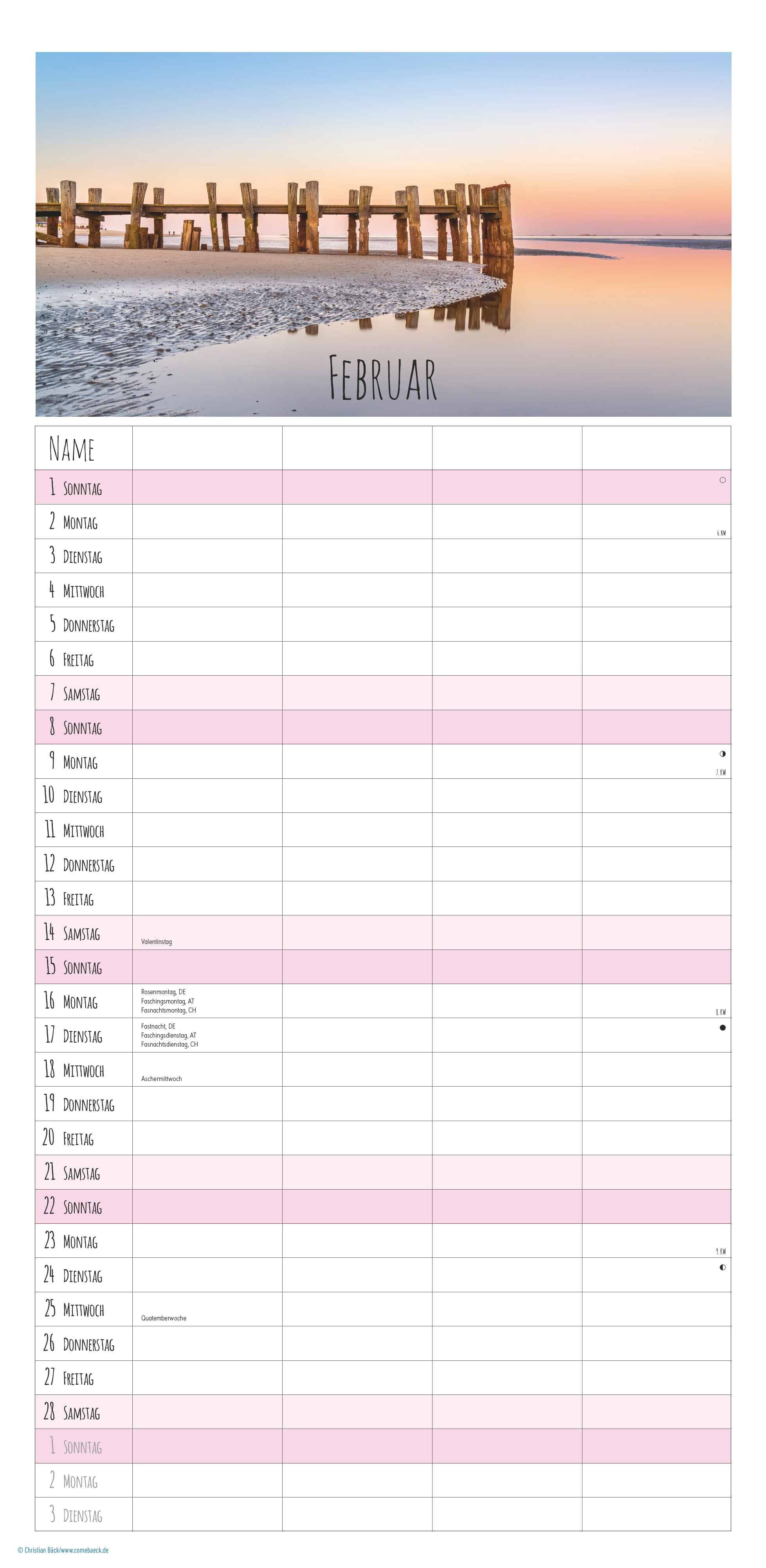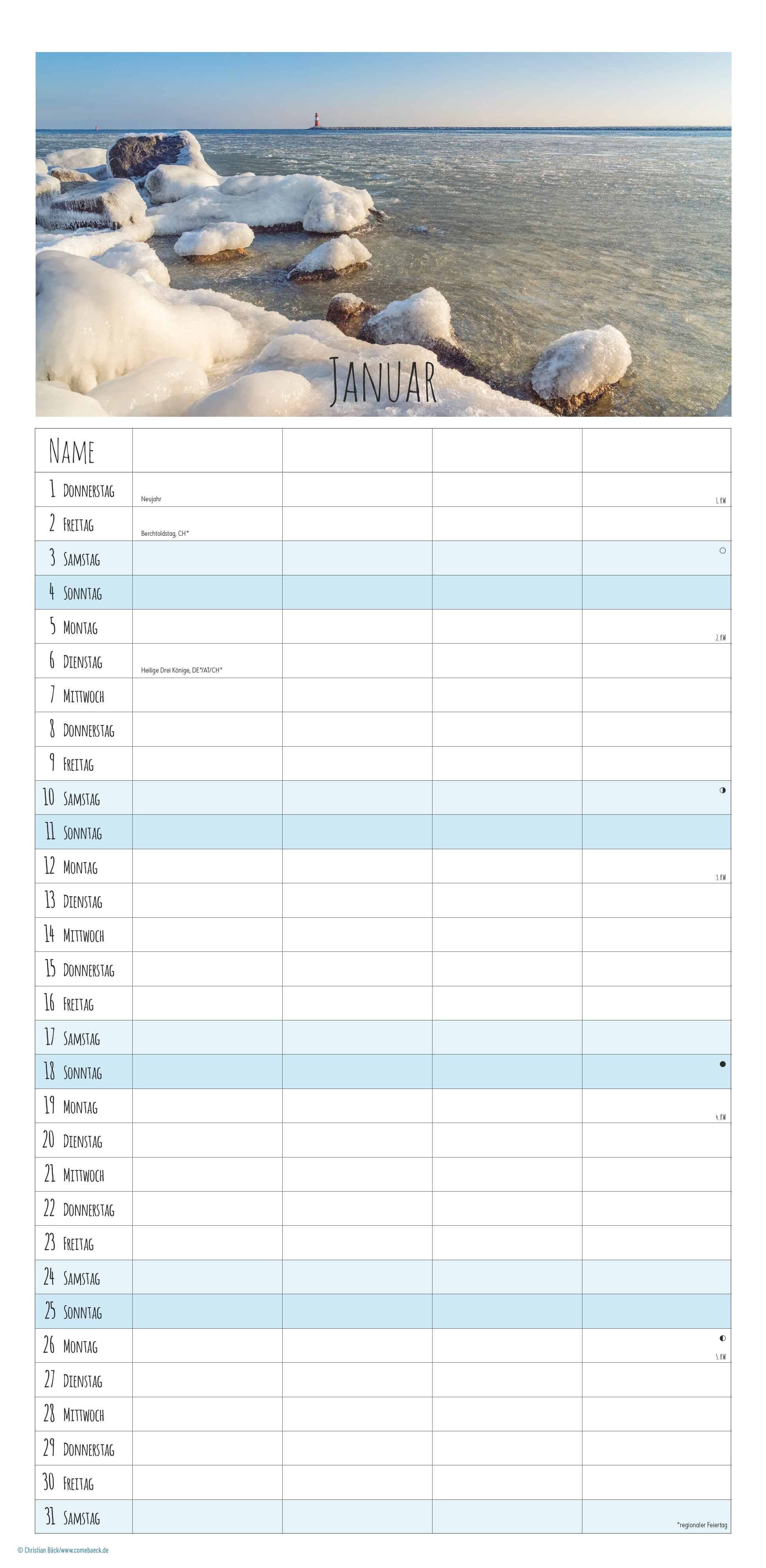 Der Familienplaner 2026 Seeblick von Alpha Edition vereint stimmungsvolle Landschaftsaufnahmen mit praktischer Alltagsorganisation. Monat für Monat begleiten Sie farbintensive Bilder vom Meer, die Ruhe und Entspannung in Ihren Alltag bringen. Dank der 4 Spalt...