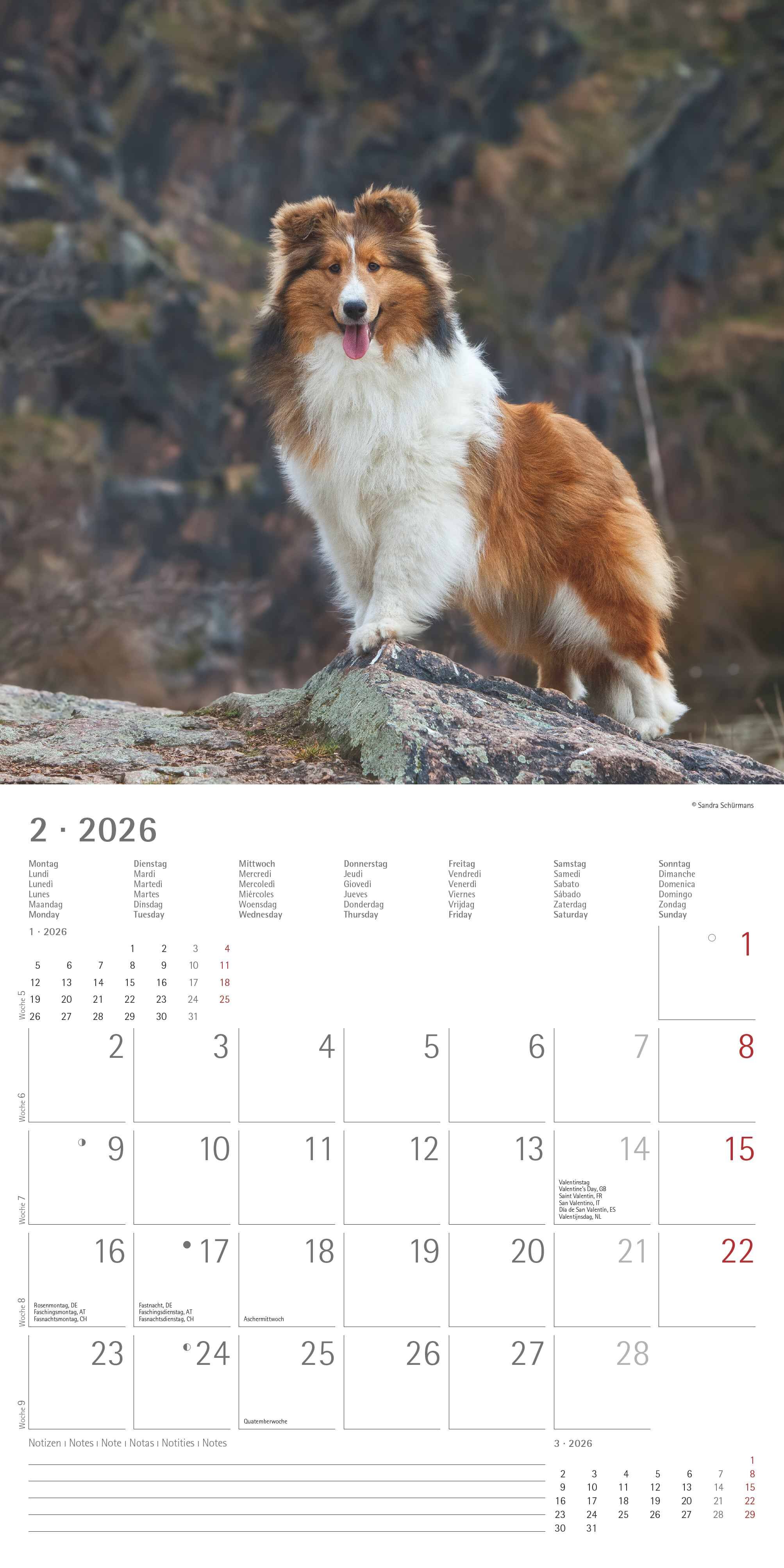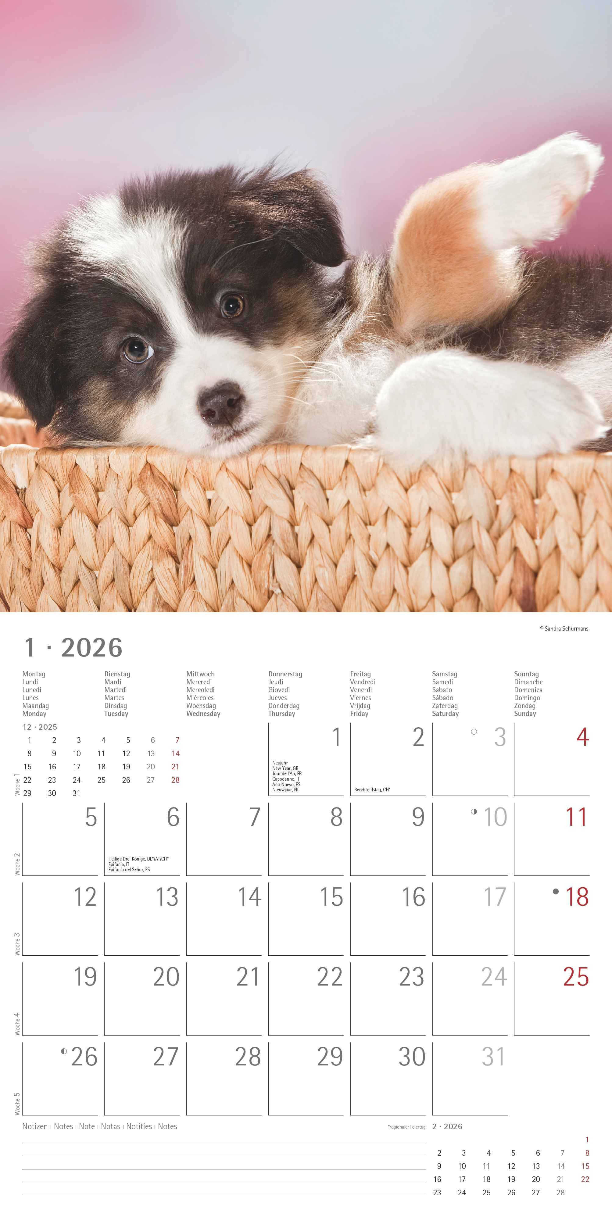 Der Alpha Edition Hunde Kalender 2026 bringt Monat für Monat die schönsten Aufnahmen verschiedener Hunderassen direkt an Ihre Wand. Von verspielten Welpen bis zu stolzen ausgewachsenen Vierbeinern die hochwertigen Fotografien fangen den Charme und die Persönl...