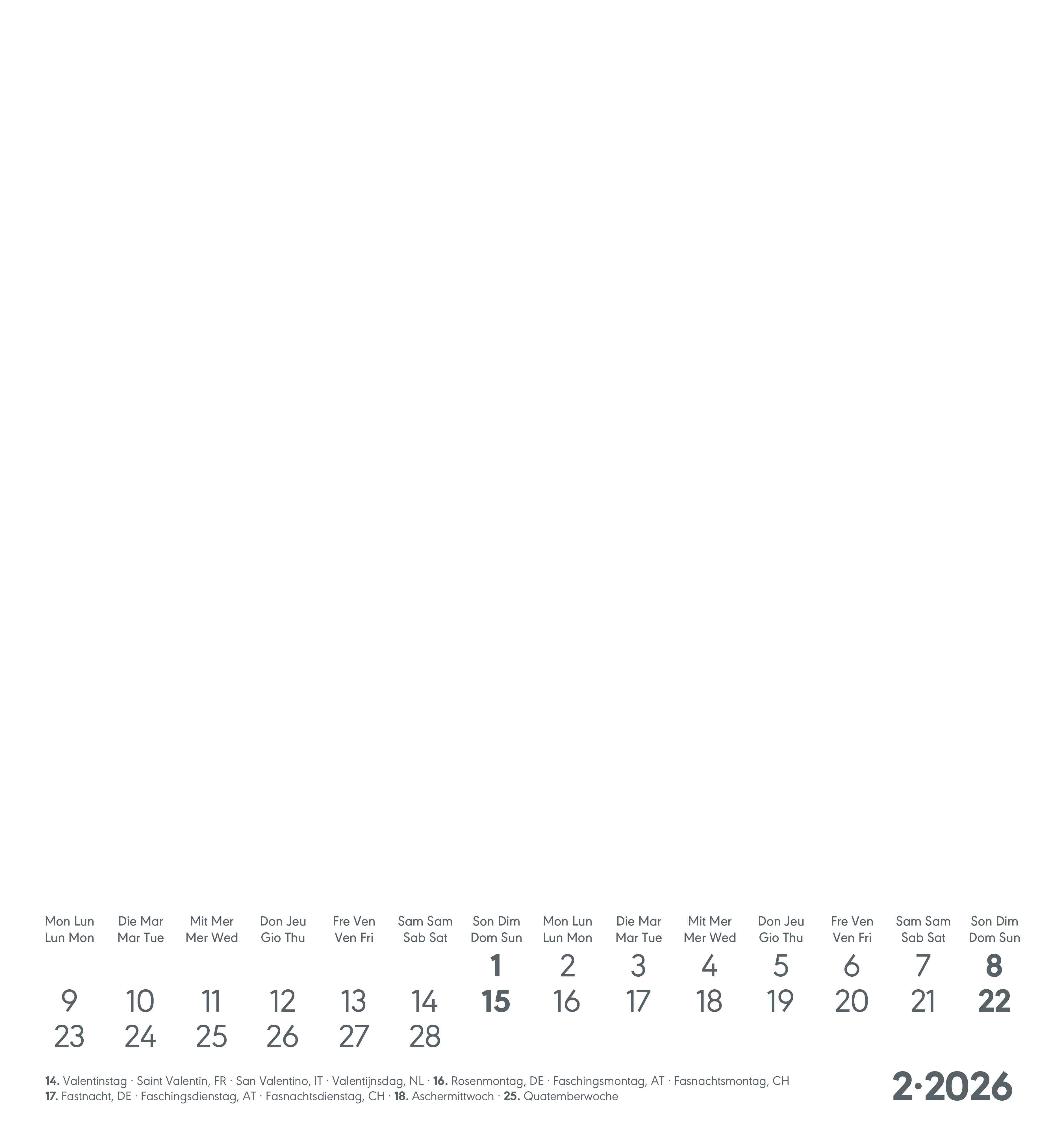 Gestalten Sie Ihren Alltag persönlich und kreativ mit dem Alpha Edition Kreativ-Kalender Weiß 2026 im handlichen 16×17 cm-Format. Der klare weiße Hintergrund mit schwarzer Schrift lässt Ihre Bilder, Zeichnungen und Collagen stilvoll wirken. Highlights: Anspre...