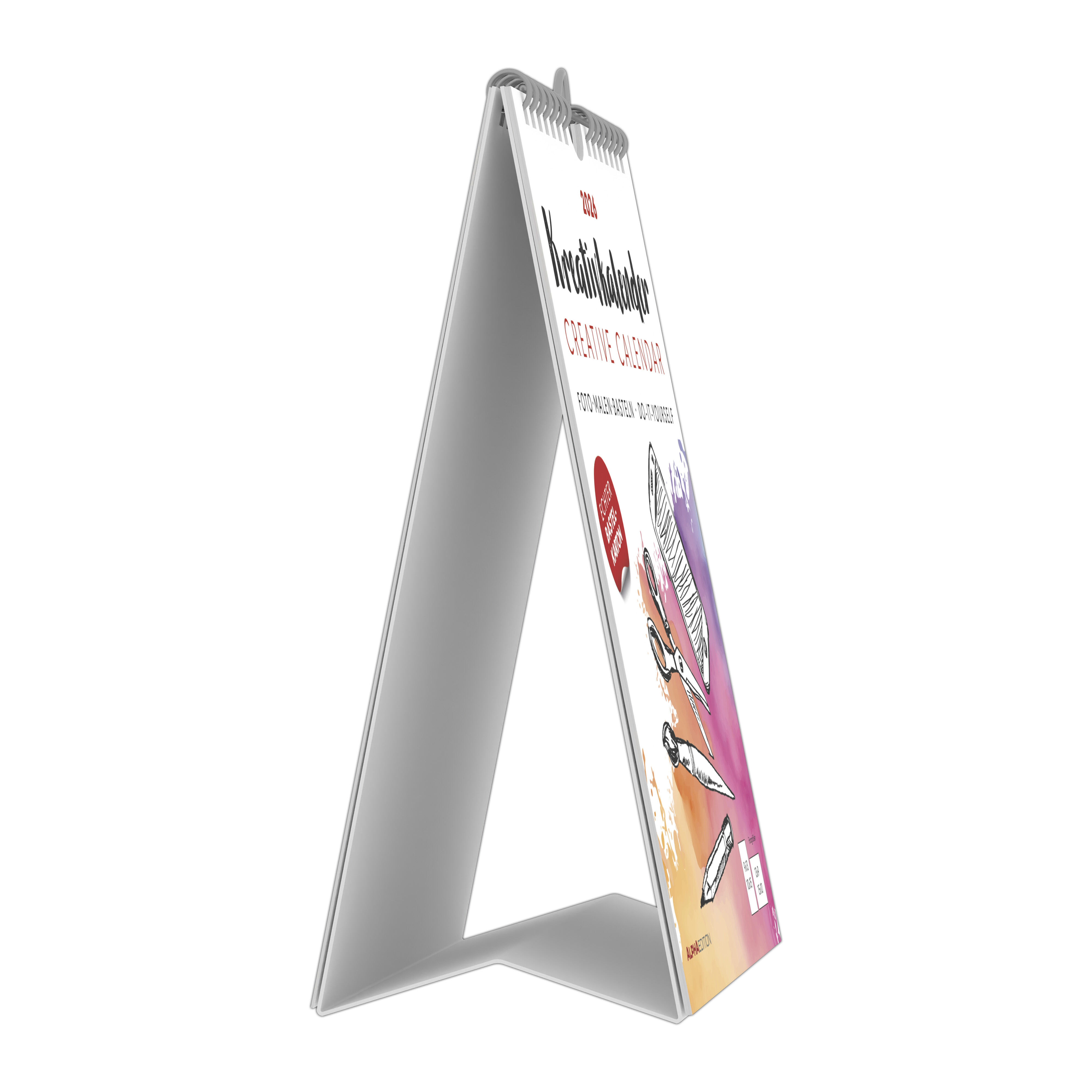 Gestalten Sie Ihren Kalender ganz nach Ihren Vorstellungen mit dem Alpha Edition Kreativ-Kalender Tischaufsteller hoch weiß 2026. Dieser hochwertige Bastelkalender im Format 16×20 cm bietet Platz für Fotos, Zeichnungen, Malereien und kreative Basteleien. Das ...