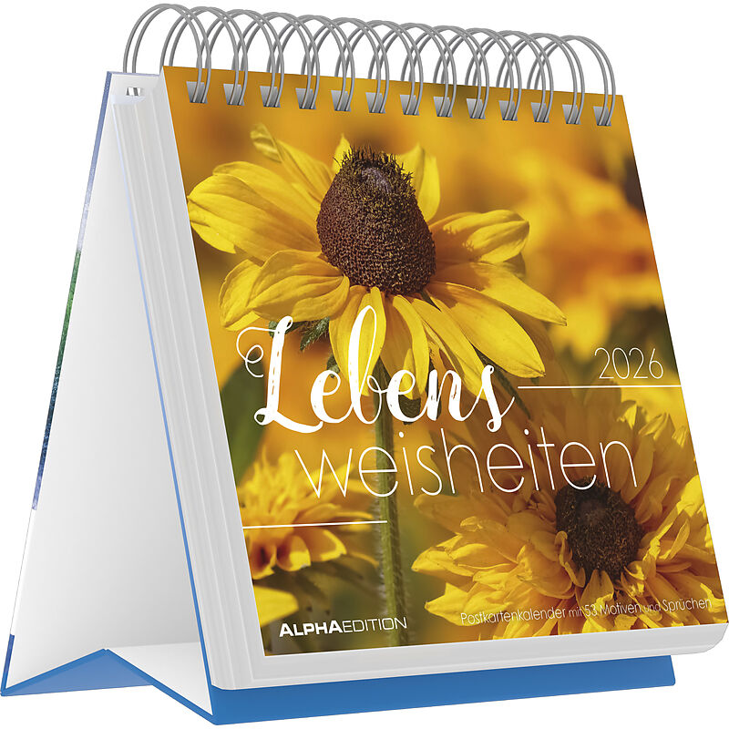 Alpha Edition - Lebensweisheiten 2026 Postkartenkalender 16×17 cm mit 53 Zitaten & stimmungsvollen Motiven, Tischkalender mit Aufsteller & Perforation, FSC-zertifiziert, ideales Geschenk