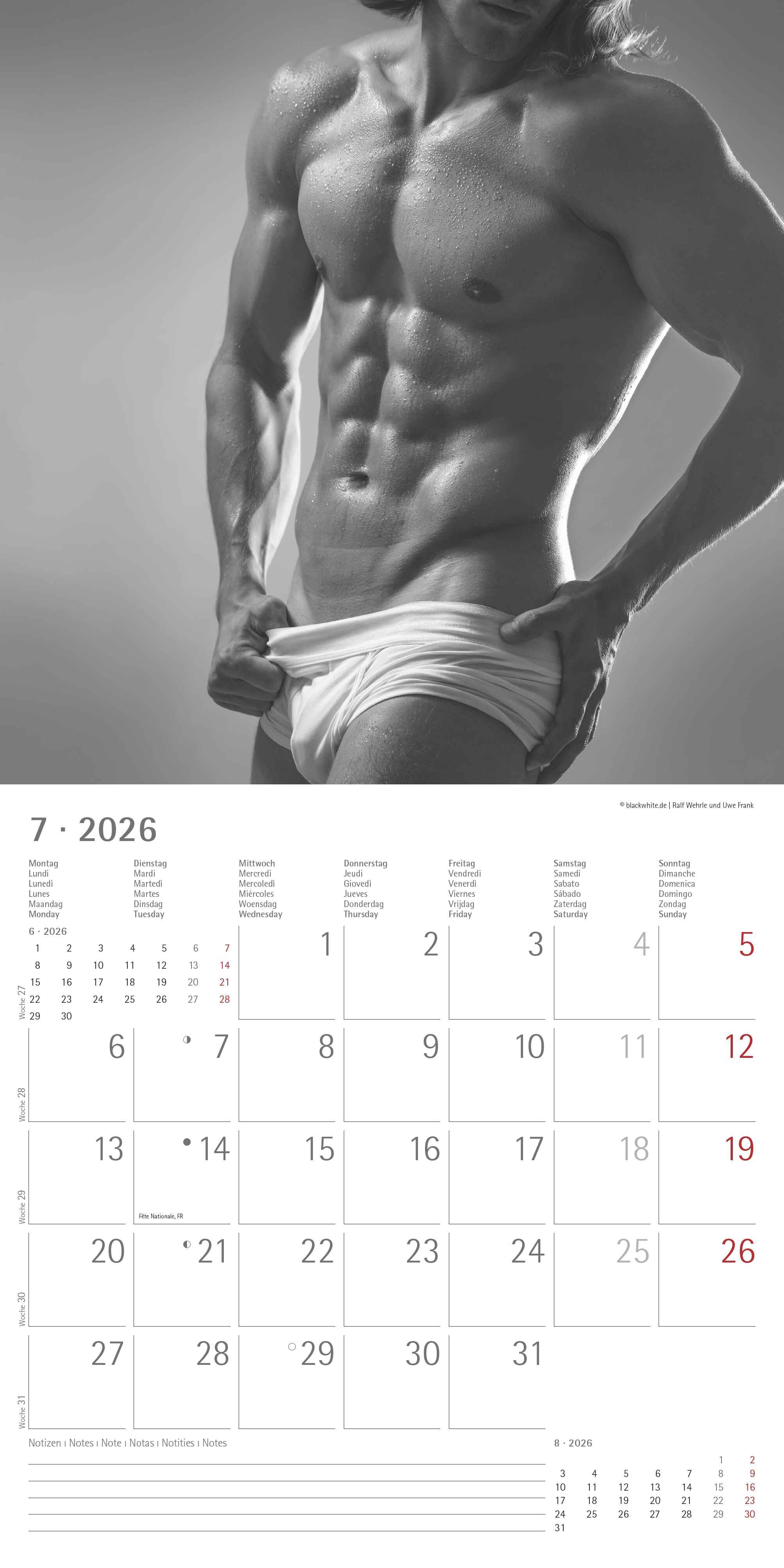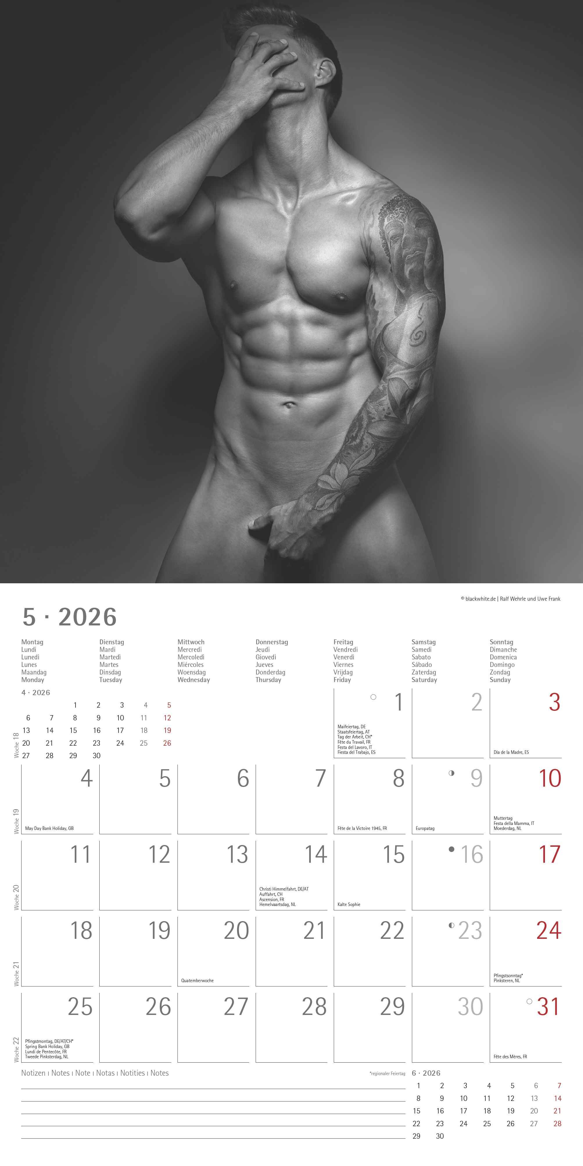 Der Alpha Edition Masculine 2026 ist der perfekte Broschürenkalender für alle Frauen, die ästhetische und stilvolle Erotik schätzen. Mit 12 ausdrucksstarken Schwarz-Weiß-Aufnahmen muskulöser, männlicher Körper begleitet dieser hochwertige Wandkalender Monat f...