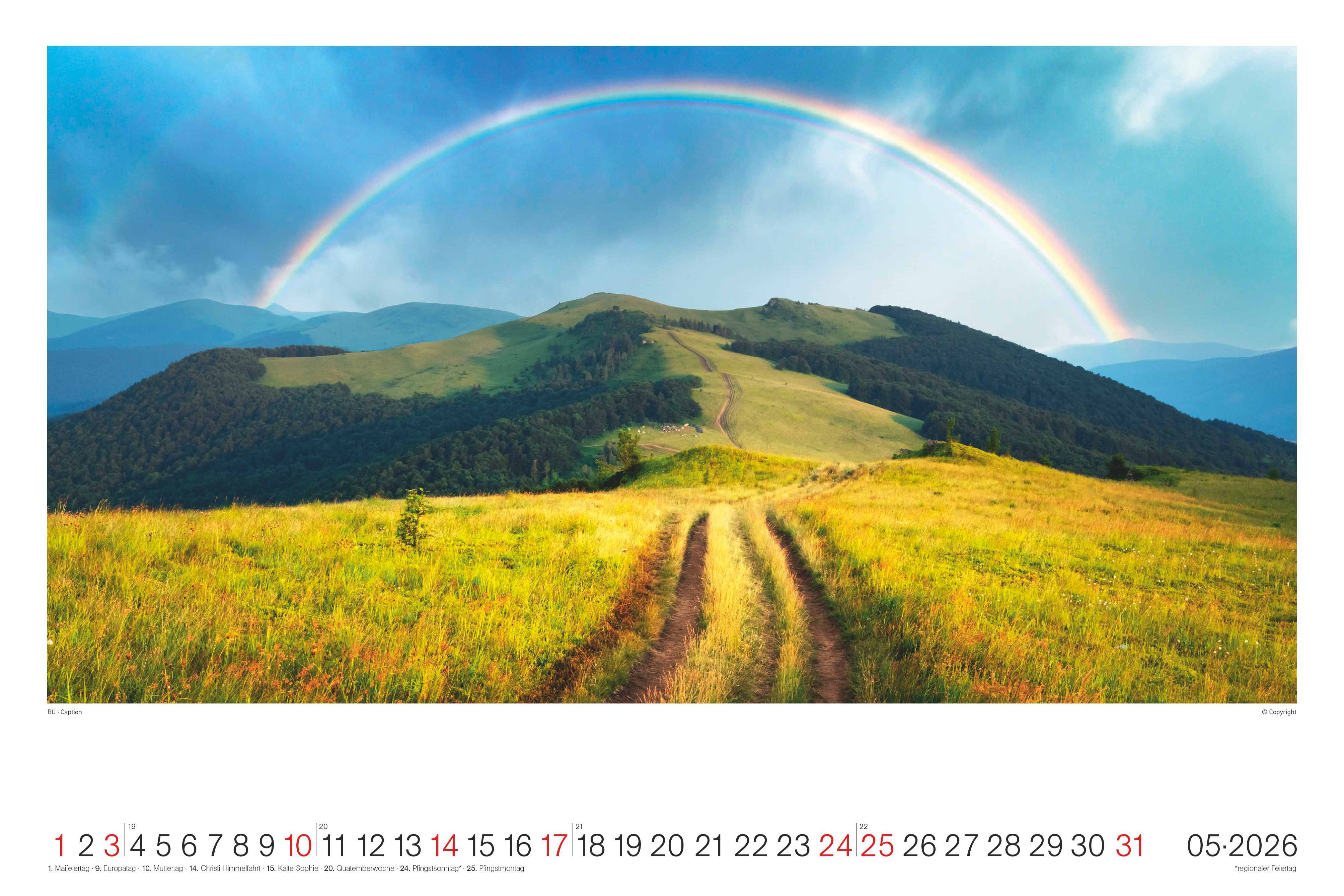 Regenbogen Wandkalender 2026 (50 x 33 cm) Bringen Sie Farbe und Hoffnung in Ihr Jahr mit dem Regenbogen Wandkalender 2026. Dieser Kalender zeigt in 12 beeindruckenden Motiven die faszinierende Schönheit und Symbolkraft von Regenbögen eingefangen in atemberaub...
