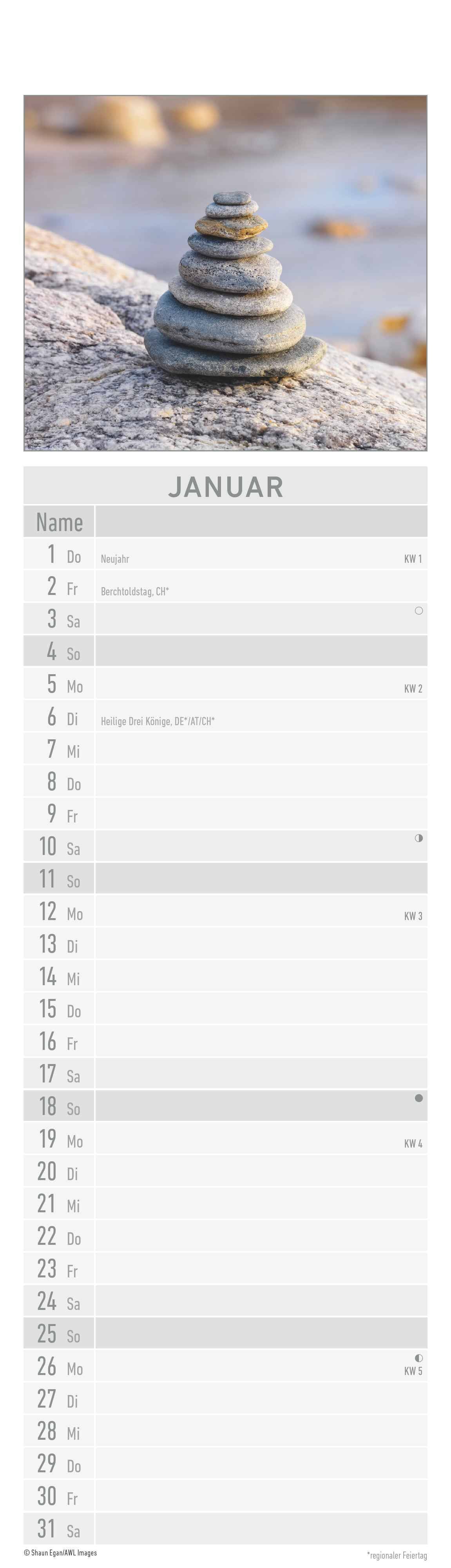 Der Alpha Edition Streifenplaner Mini Zen 2026 ist der perfekte Kalender für alle, die auch auf kleinstem Raum nicht auf Organisation und stilvolle Bilder verzichten möchten. Mit 12 stimmungsvollen Naturfotografien bringt dieser kompakte Wandkalender Monat fü...