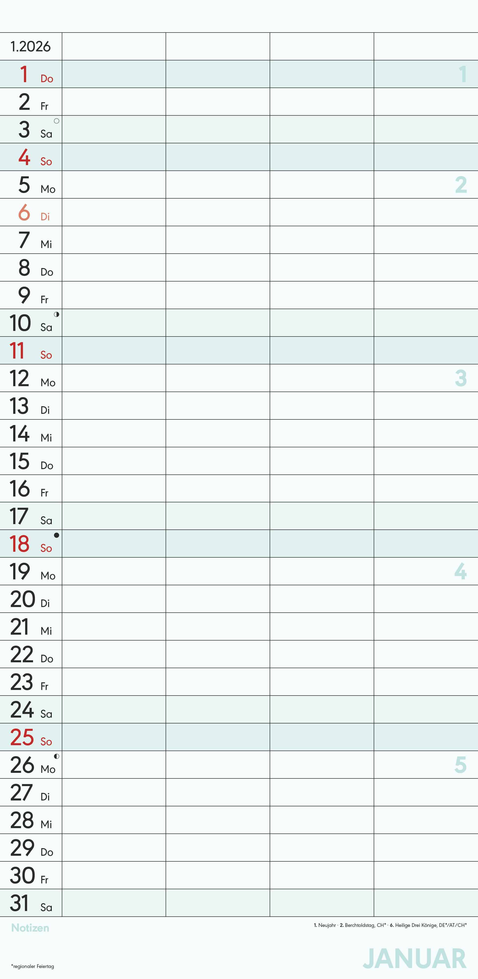 Der Alpha Edition Superplaner M 2026 ist der ideale Familienkalender für alle, die den Überblick über Termine, Geburtstage und wichtige Ereignisse behalten möchten. Mit seinen vier klar abgegrenzten Spalten lassen sich die Einträge für jedes Familien...