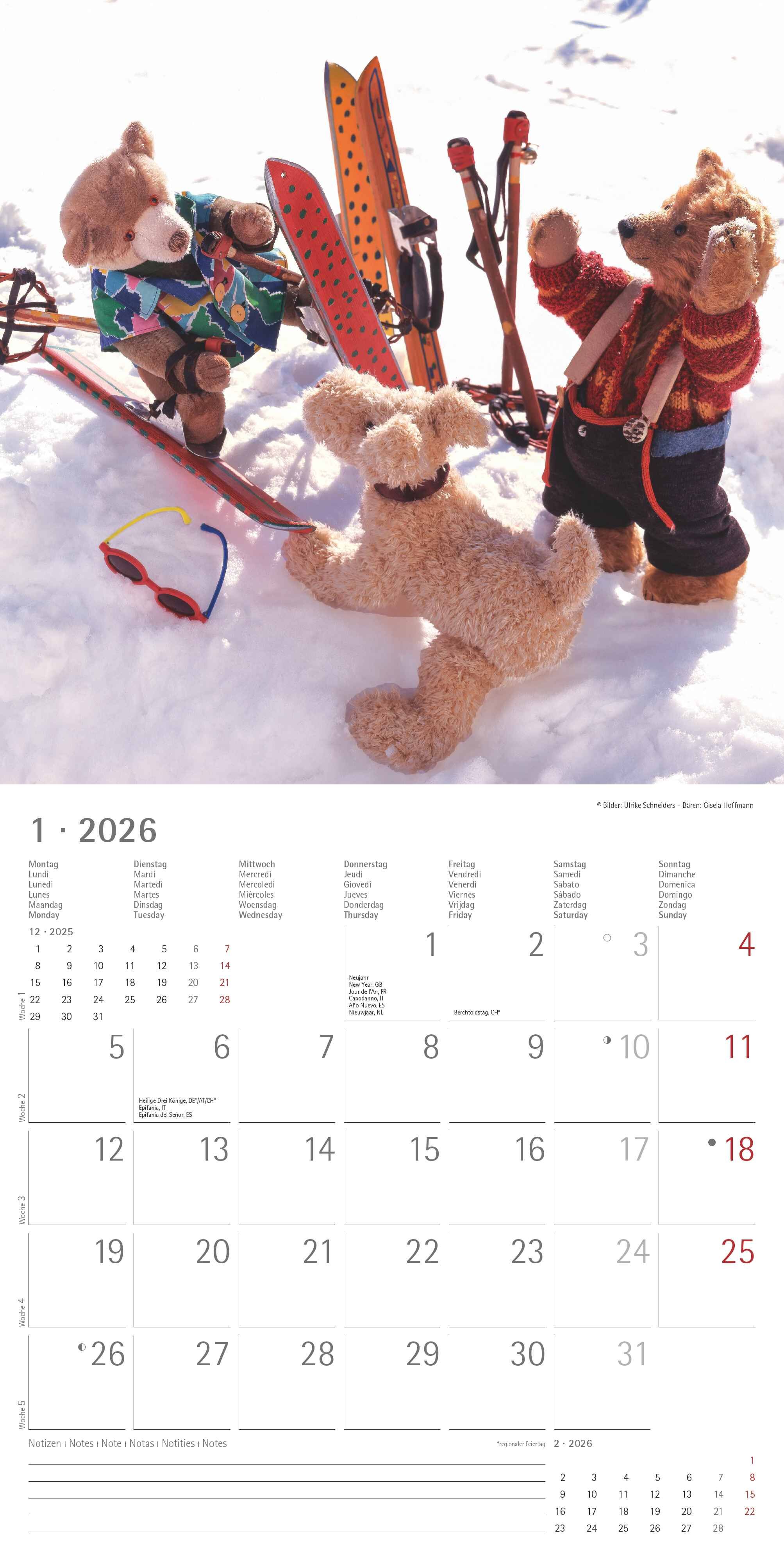 Erleben Sie Monat für Monat die charmante Welt der Teddybären mit dem Alpha Edition Teddy Kalender 2026. Dieser hochwertige Broschürenkalender zeigt 12 liebevoll inszenierte Szenen süßer Teddys in unterschiedlichen Jahreszeiten und Alltagssituationen vom Skif...