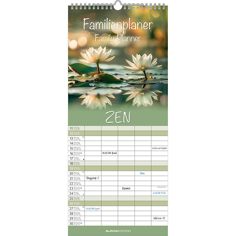 Der Alpha Edition Familienplaner Zen 2026 ist der ideale Begleiter für einen gut organisierten Familienalltag. Mit fünf übersichtlichen Spalten lassen sich die Termine aller Familienmitglieder klar strukturieren ob Schulausflüge, Arzttermine, Sportveranstaltu...