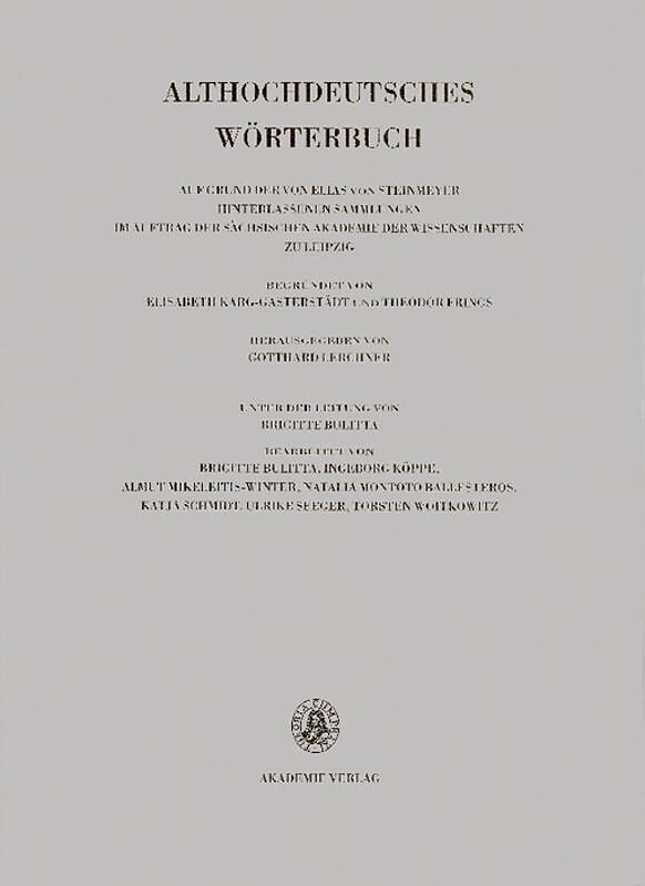 The Dictionary of Old High German aims to comprehensively trace and compile all of the extant vocabulary from this earliest stage of the German language, as found in all textual forms. Das Althochdeutsche Wörterbuch basiert auf den von Elias von Steinmeyer hin...