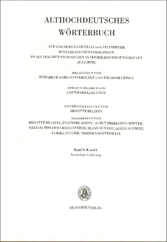 The Dictionary of Old High German aims to comprehensively trace and compile all of the extant vocabulary from this earliest stage of the German language, as found in all textual forms. Das Althochdeutsche Wörterbuch basiert auf den von Elias von Steinmeyer hin...