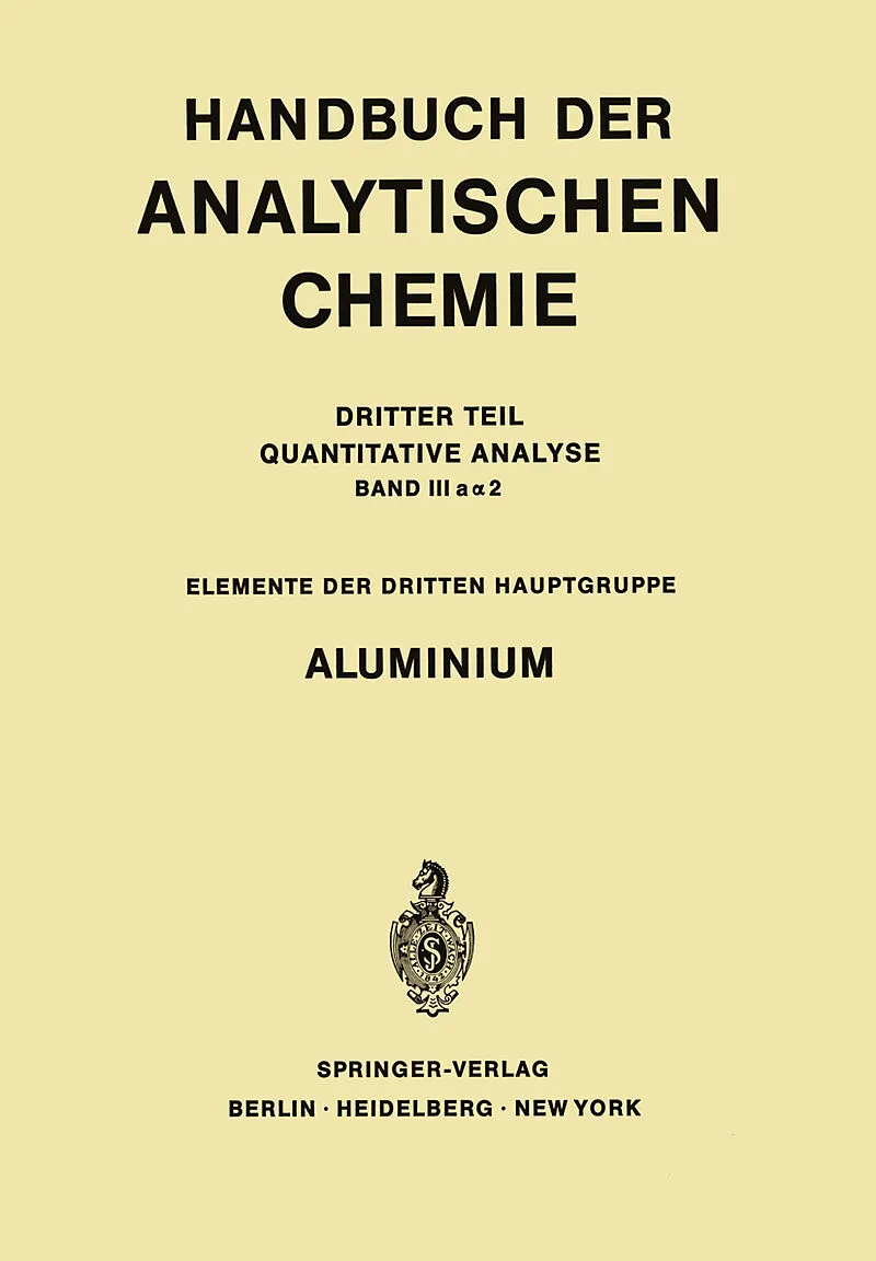 Inhalt Aluminium.- Grundlagen der Chemie des Aluminium-Ions in wässerigen Systemen.- Bestimmungsverfahren.- § 1. Gewichtsanalytische Bestimmungsverfahren.- § 2. Maßanalytische Bestimmungsverfahren.- § 3. Photometrische Bestimmungsverfahren.- § 4. Fluorimetrisc...